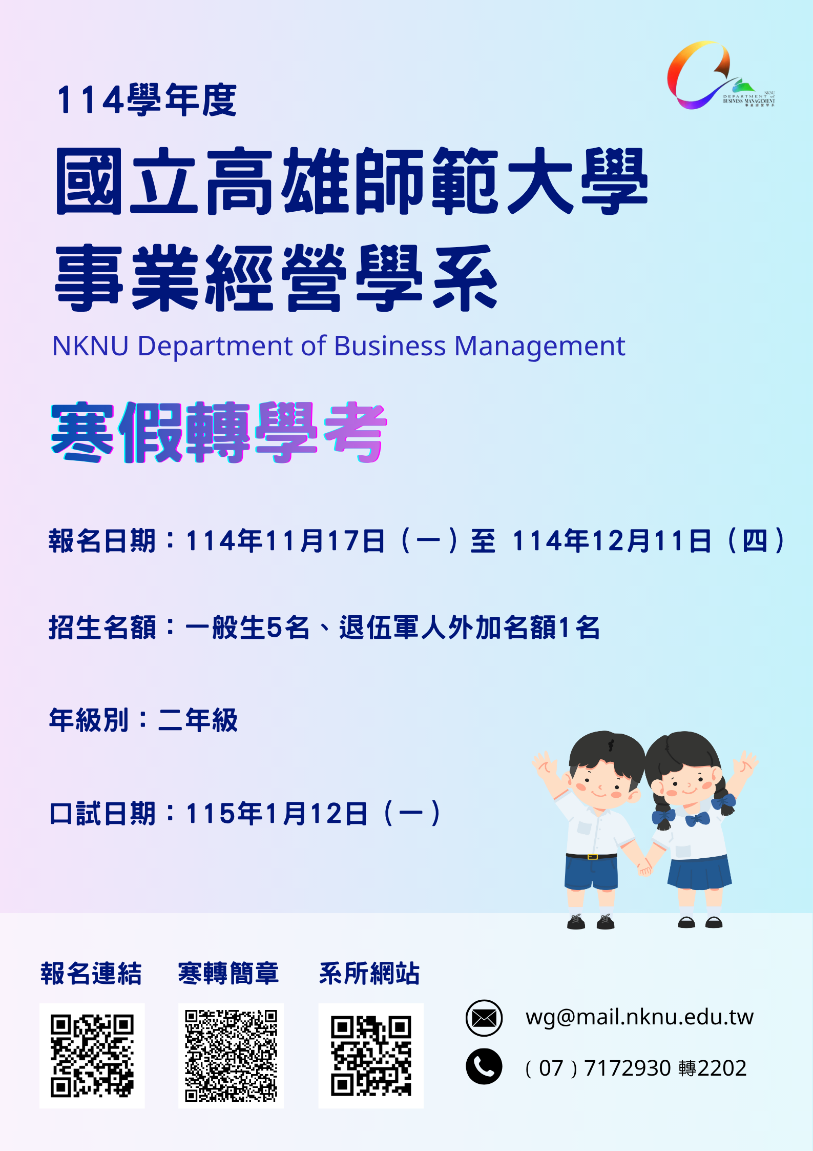 📢 114 高師大事業經營學系寒假轉學考
