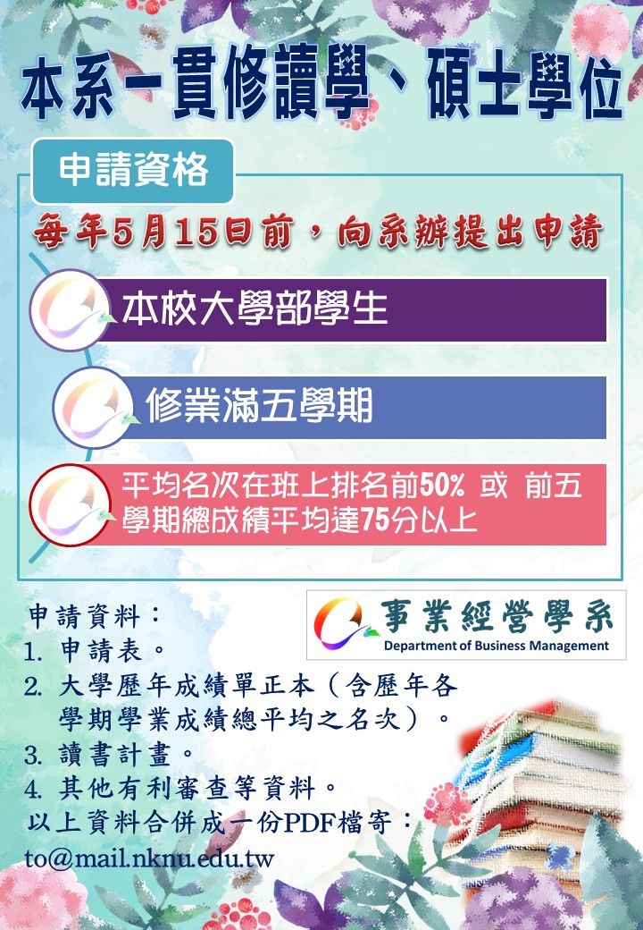 【公告】本系一貫修讀學、碩士學位開始申請囉