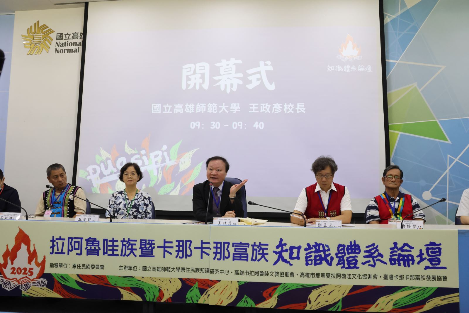 國立高雄師範大學原住民族知識研究中心,今(19)日假和平校區國際會議廳,策辦「2025年拉阿魯哇族暨卡那卡那富族知識體系」論壇,邀請17位來自各領域專家擔任講座外,計吸引近百位校內外人士報名出席,並採同步直播。開幕儀式由高師大王政彥校長主持,他致詞表示,本校原住民族知識研究中心已在原住民族文化領域耕耘多年,希望未來能夠不斷充沛能量,成為原住民族知識交流與共享的平台。