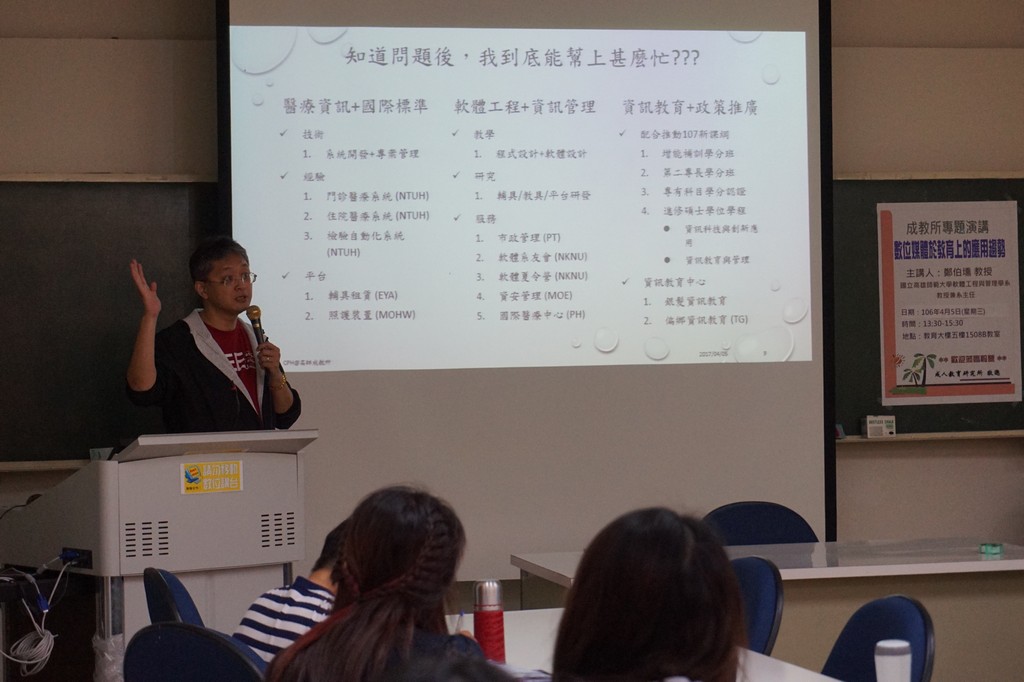 活動花絮 》106年4月5日舉行專題演講:數位媒體於教育上的應用趨勢