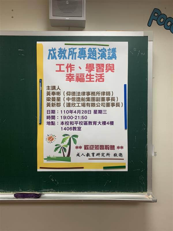 活動花絮 》2021.04.26 成教所專題演講_工作、學習與幸福生活