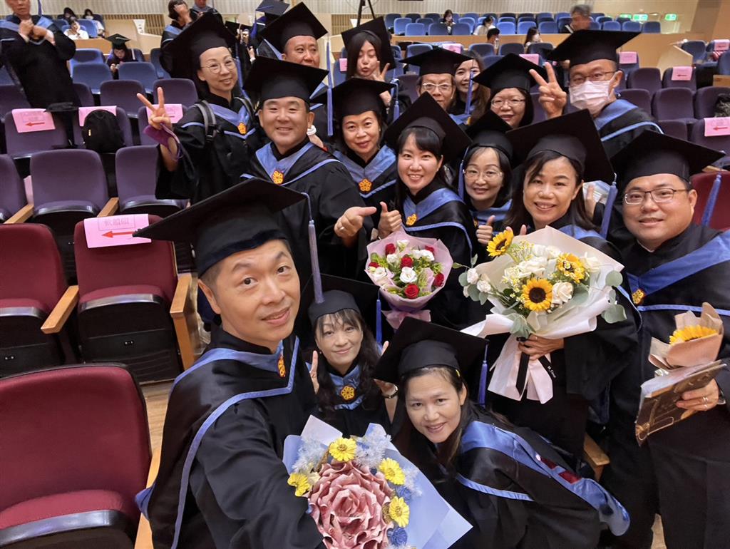112年6月10日110級成教所碩班、博班、組發班畢業典禮,在校長吳連賞的祝福下,順利接下畢業證書,迎向人生新的旅程。本所李所長亦一同參與並祝福畢業生,邁向康莊大道!」