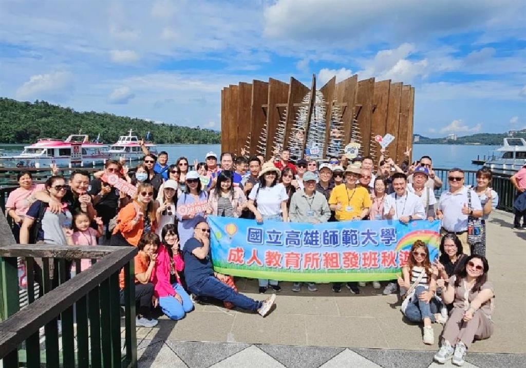 組發班學生會策劃於112年10月14-15日舉辦高雄師範大學成教所組發班秋遊活動,邀請所內專任及兼任老師共襄盛與,進行師生交流,旅遊景點遍及南投地區,在日月潭畔、在埔里交流情感,透過活動規劃及交流活動,增進組織領導的能力及彼此情誼。