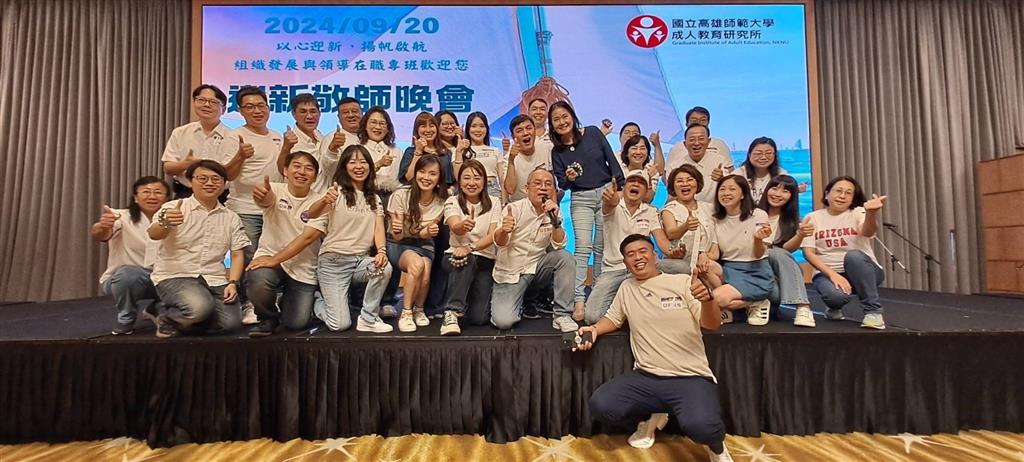 高師大成人教育研究所組發碩專班學生會於113年9月20日在高雄漢來大飯店9樓金鳳廳舉辦‘’以心迎新-揚帆啟航 迎新敬師餐會‘’,邀請畢業學長姐共襄盛舉。