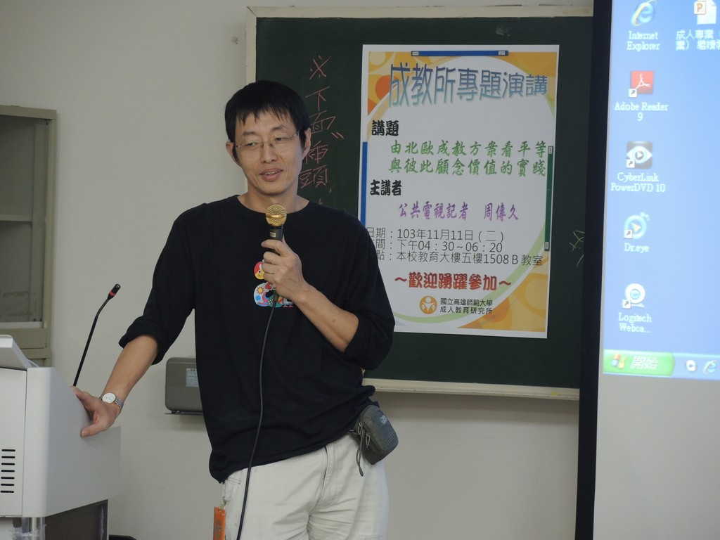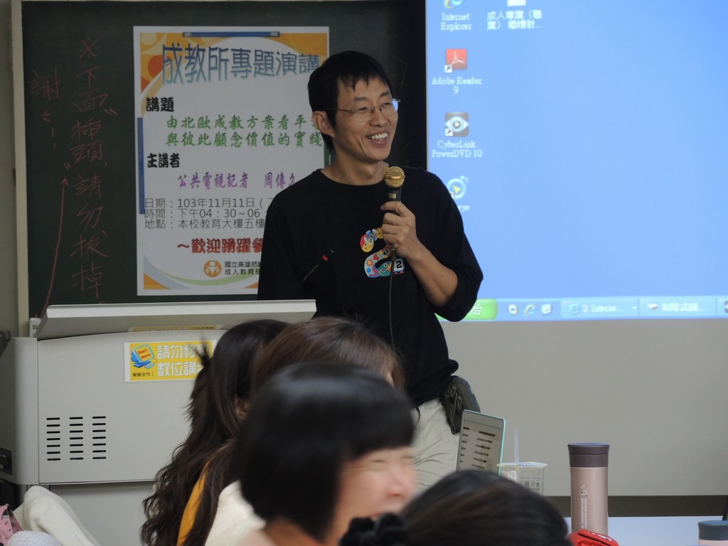 - 專題演講:「由北歐成教方案看平等與彼此顧念價值的實踐」講者:公共電視特派員周傳久
