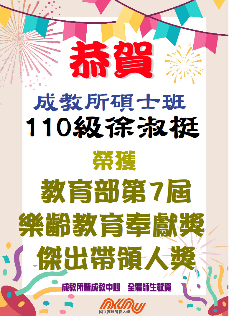 共賀碩班108級李蕎安、110級徐淑梃 獲教育部第7屆樂齡教育奉獻獎