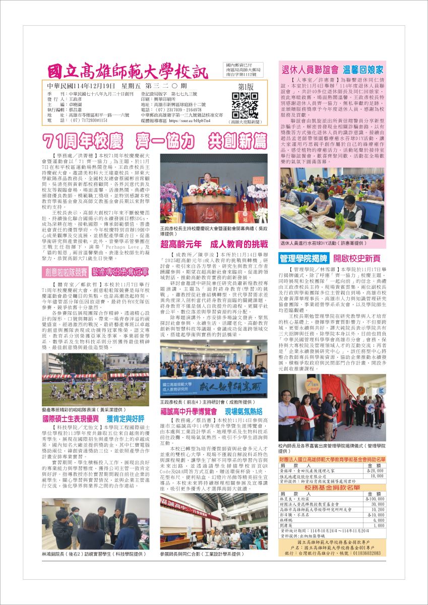 教務長室:(07)7172930 分機:1101-1102 和平教務組:(07)7172930 分機:1131-1136 傳真:(07)7166909 燕巢教務組:(07)7172930 分機:6101-6106 傳真:(07)6051104 招生企劃組:(07)7172930 分機:1111-1115 傳真:(07)7262447 綜合業務組:(07)7172930 分機:1151-1152 傳真:(07)7714419 教務創新組:(07)7172930 分機:1161-1163 傳真:(07)7262445 學分學程中心:(07)7172930 分機:1160-1161 傳真:(07)7262445