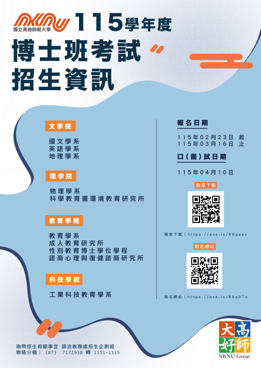 115學年度本校研究所碩士班、博士班招生考試