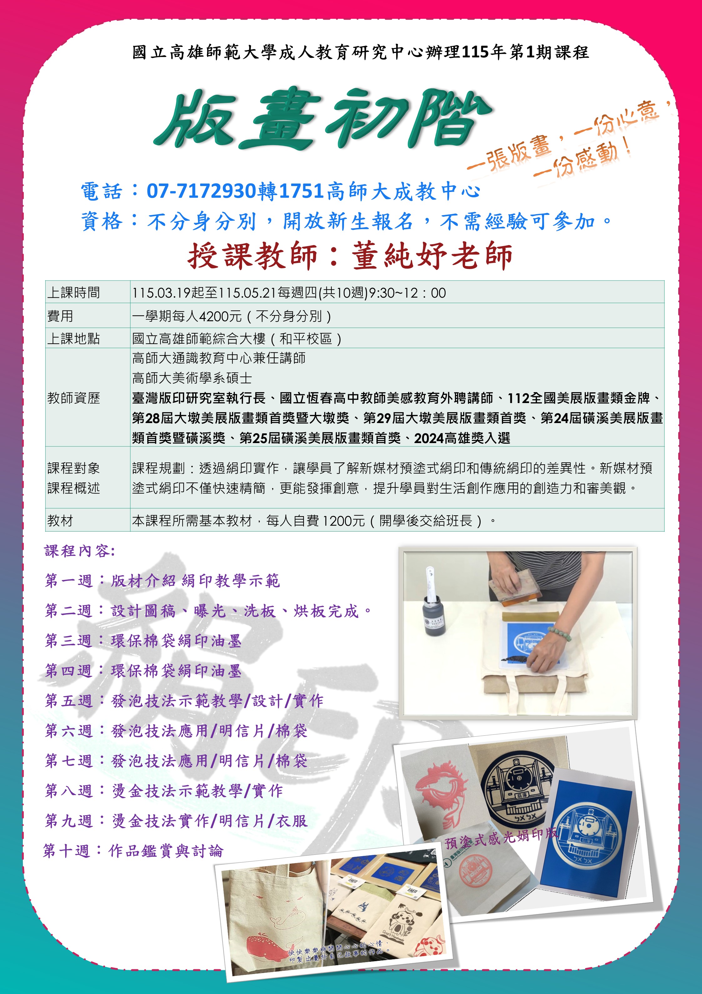 115(1)高師大 <版畫初階>招生簡章