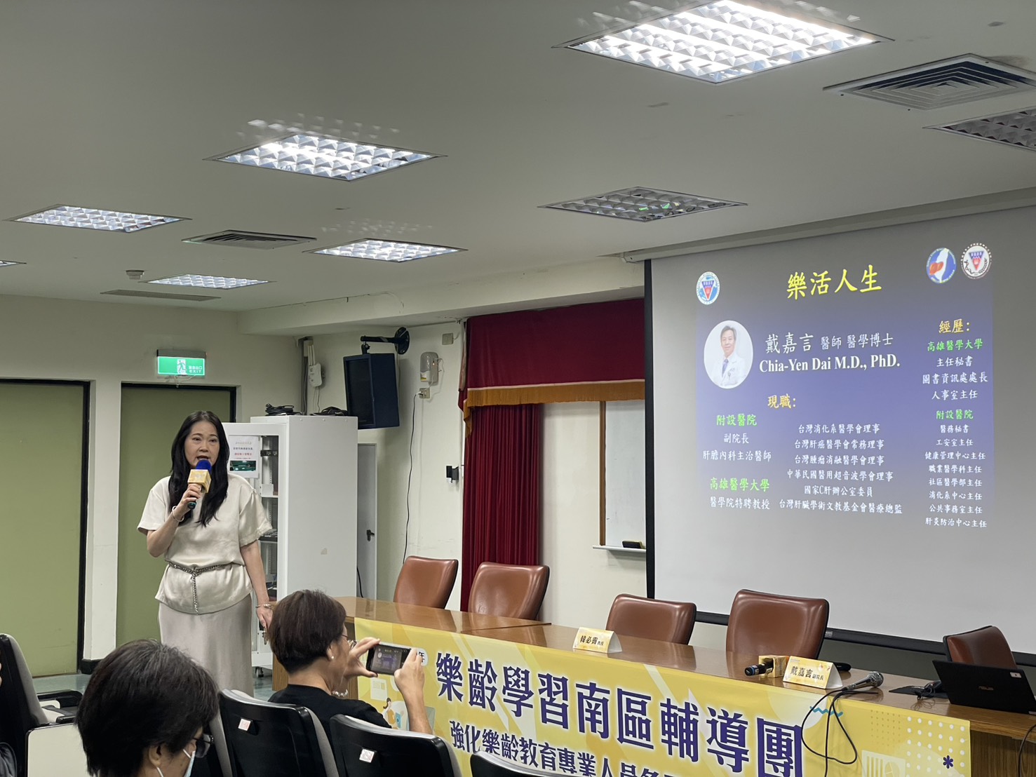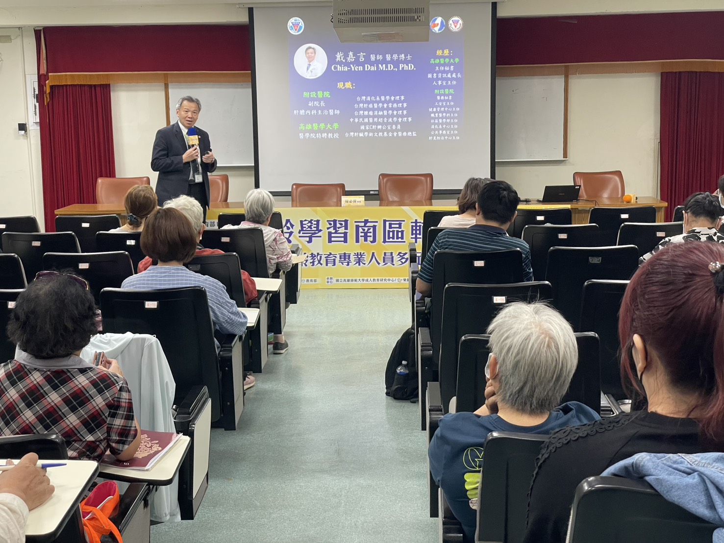 南區輔導團計畫主持人暨本校成教中心主任韓必霽教授指出,醫學素養不僅是理解醫療知識,更是樂齡學習中培養自主、理性與積極生活態度的重要核心;南區輔導團持續關注高齡者的醫學素養教育,我們今天邀請醫學大家戴嘉言副院長蒞臨分享,期望藉由知識傳遞,讓長者在日常生活中具備判讀健康資訊、預防疾病與自我照護的能力,共同協力以實現教育部第三期高齡教育中程發展計畫中"健康促進"的目標。
