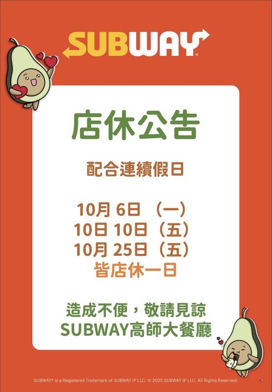 🚨🥪 SUBWAY 高師大餐廳緊急公告! 🥪🚨