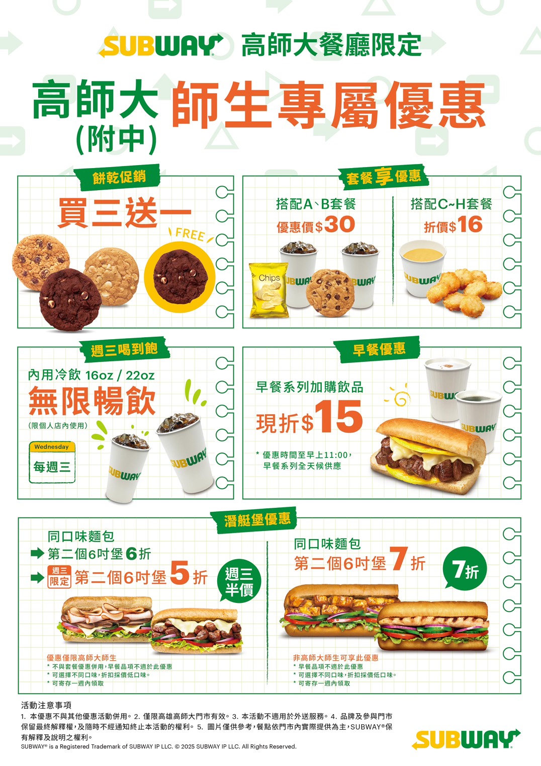 🥖 SUBWAY高師大餐廳優惠更新啦~✨