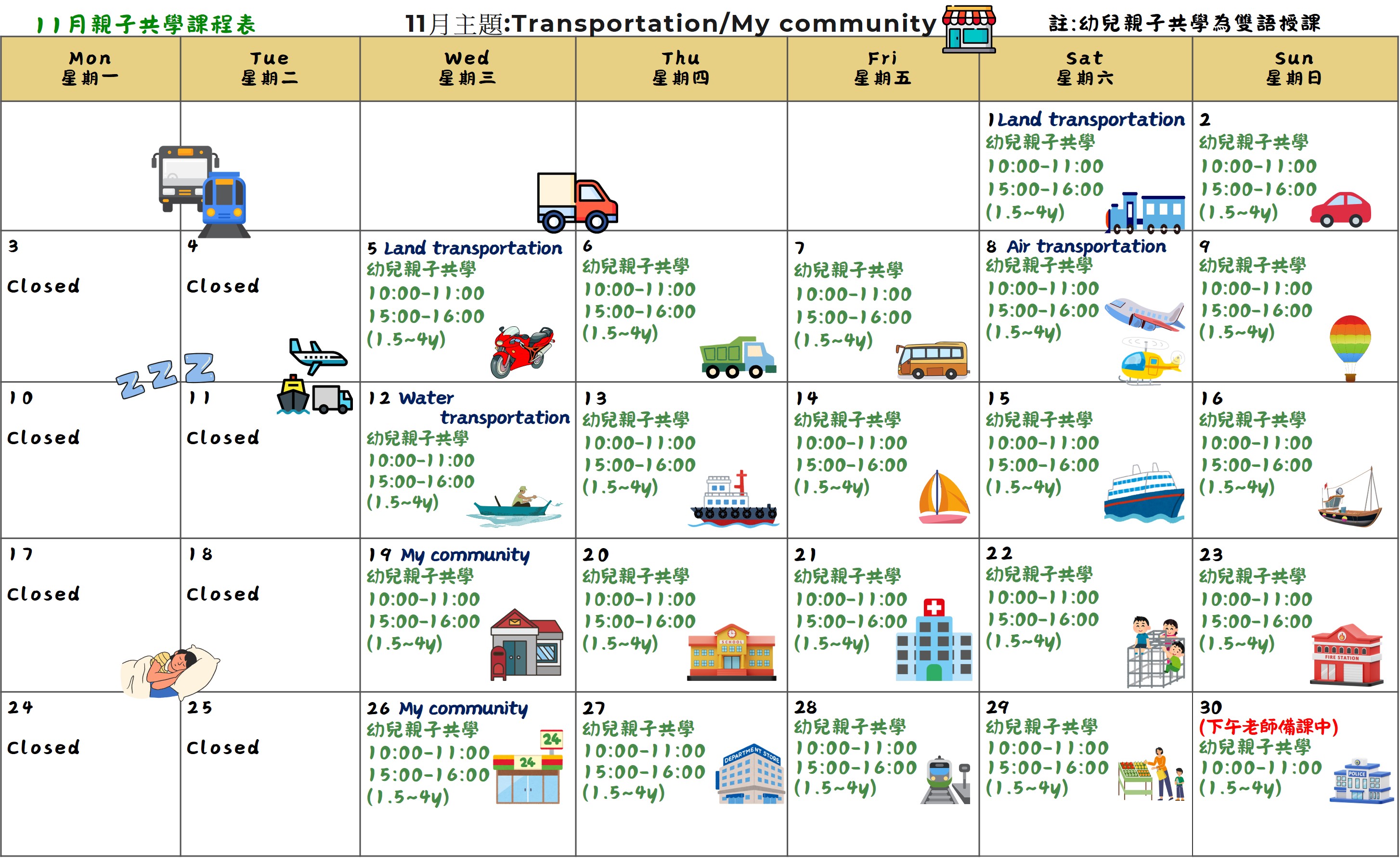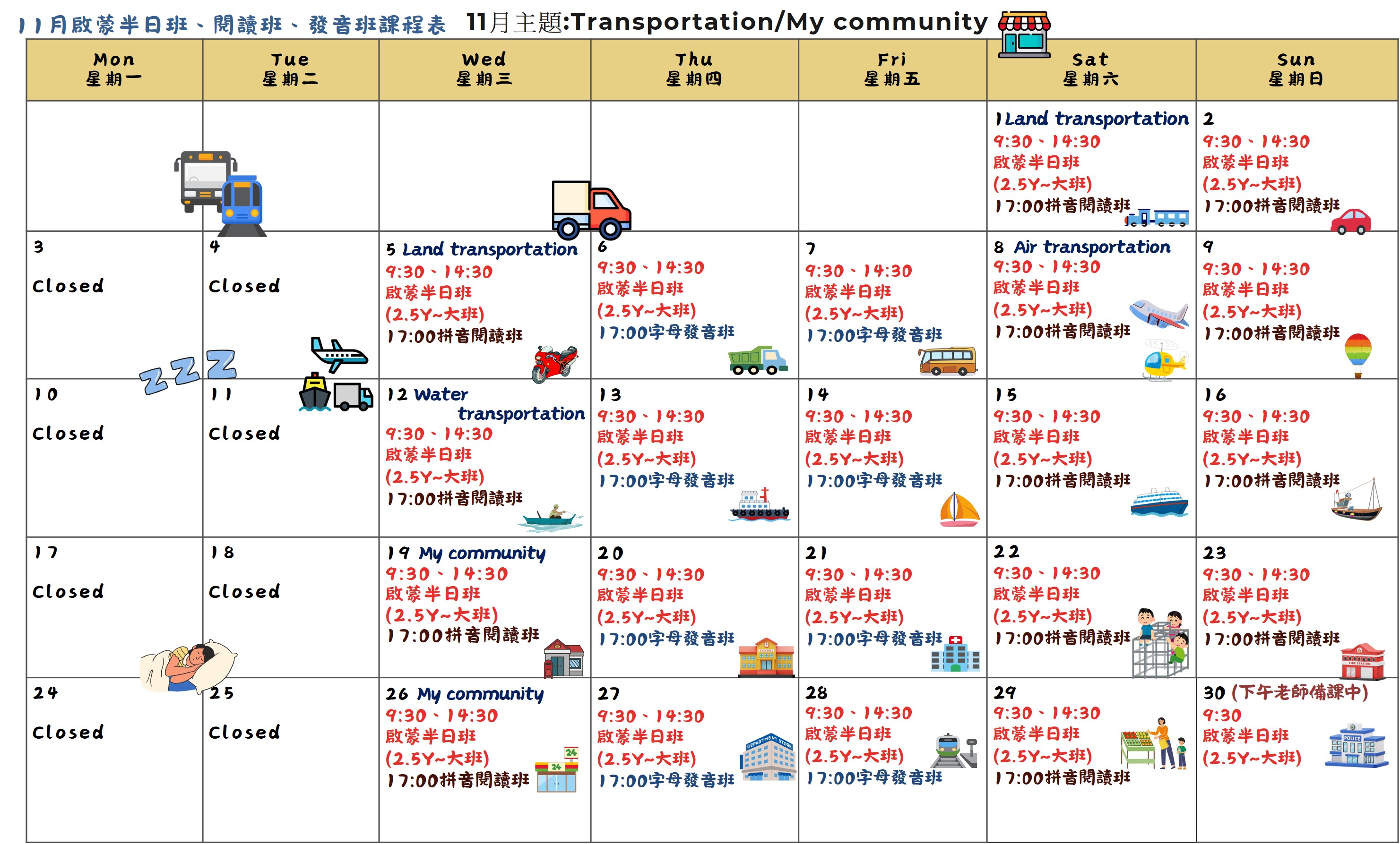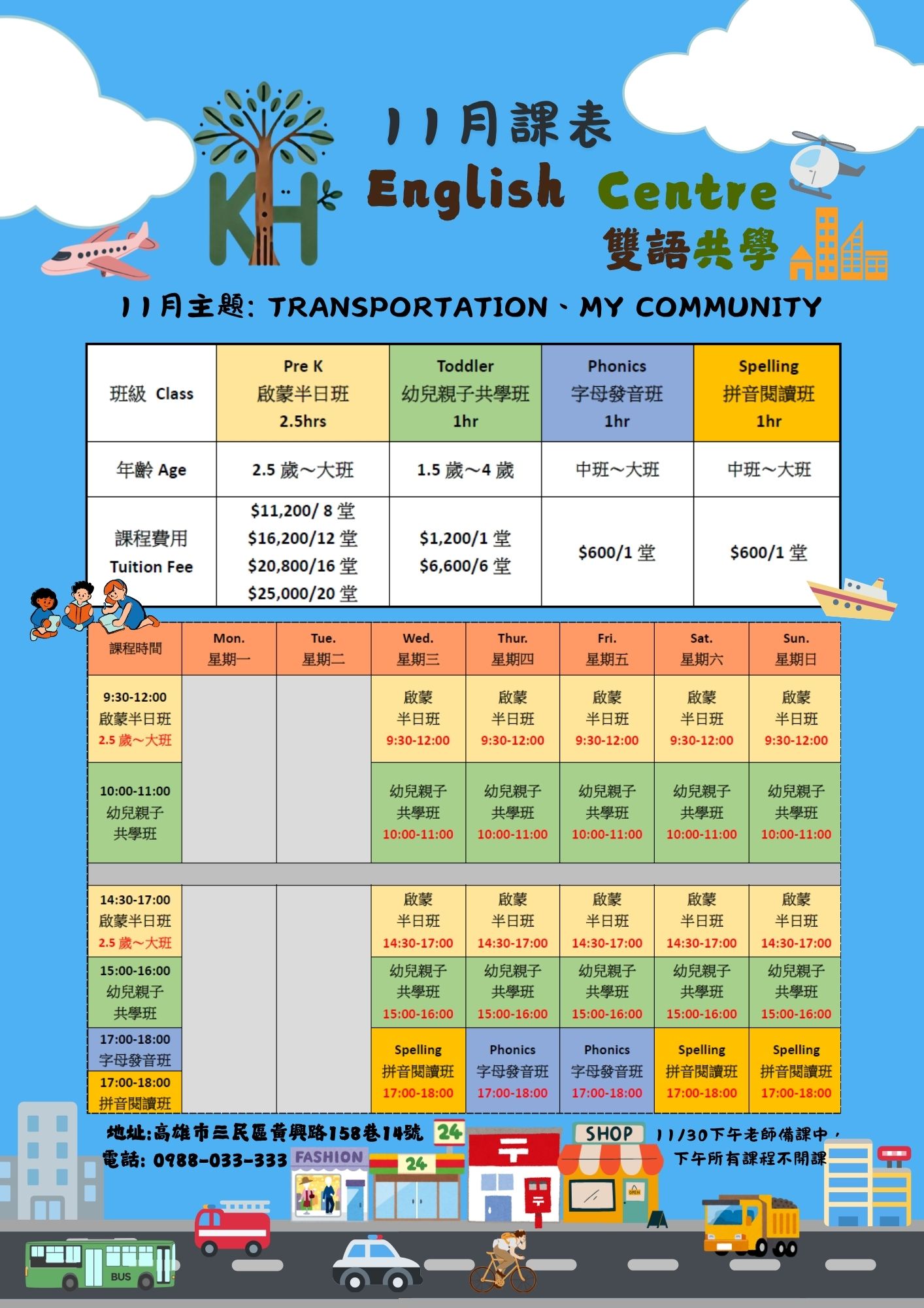 KH English Center 🚗✈️ KH 11月最新主題大放送!🚤🏪