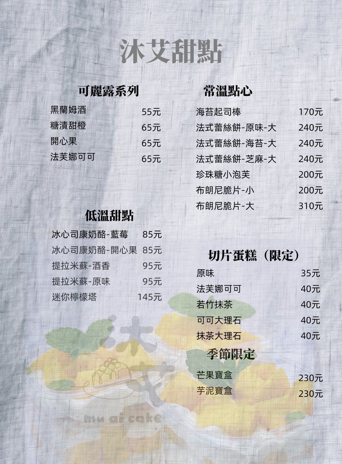 【沐艾甜點-切片蛋糕、可麗露、布朗尼等手工甜點】