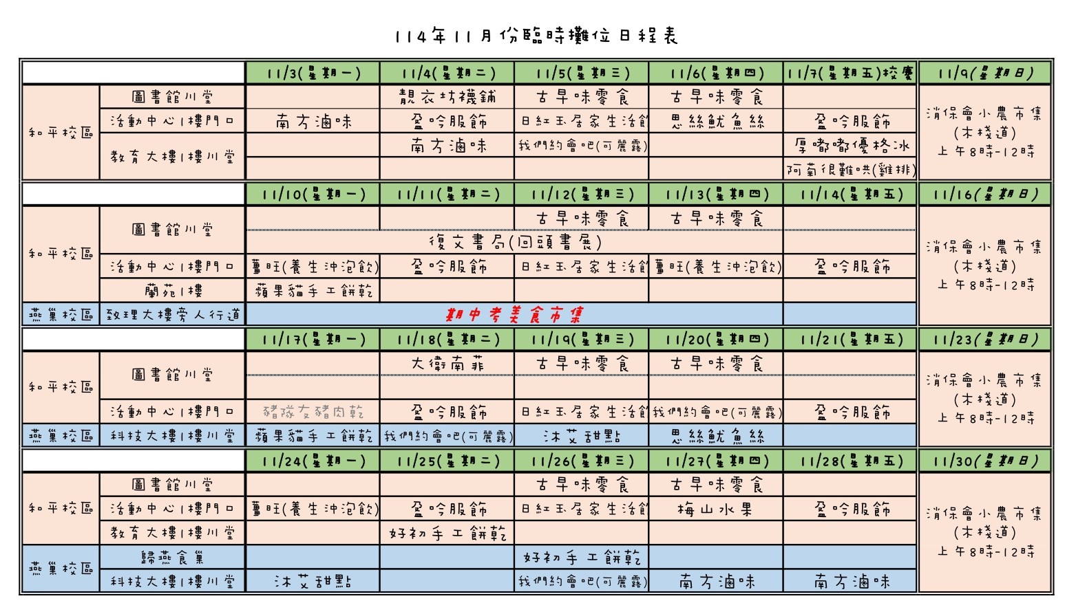 💻更多資訊詳見【總務處保管組網頁-臨時攤商服務與平面圖專區】