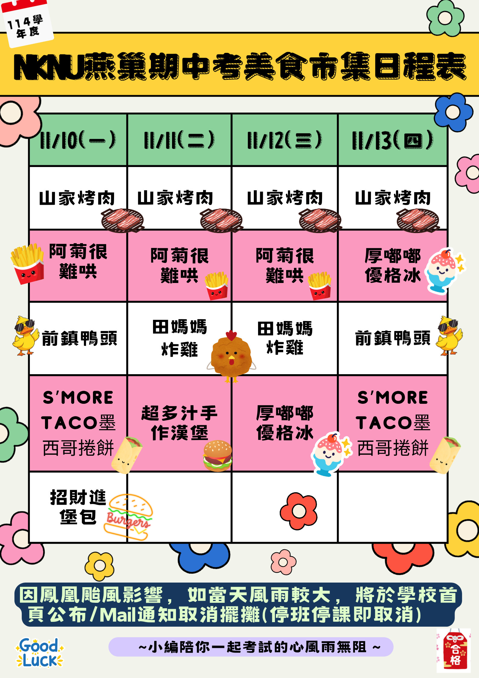 💖11/10-11/13燕巢期中考美食市集💖📚🤦♂️🙇♀️期中考試不崩潰,挺你補給在攤位🍟🍔🍨