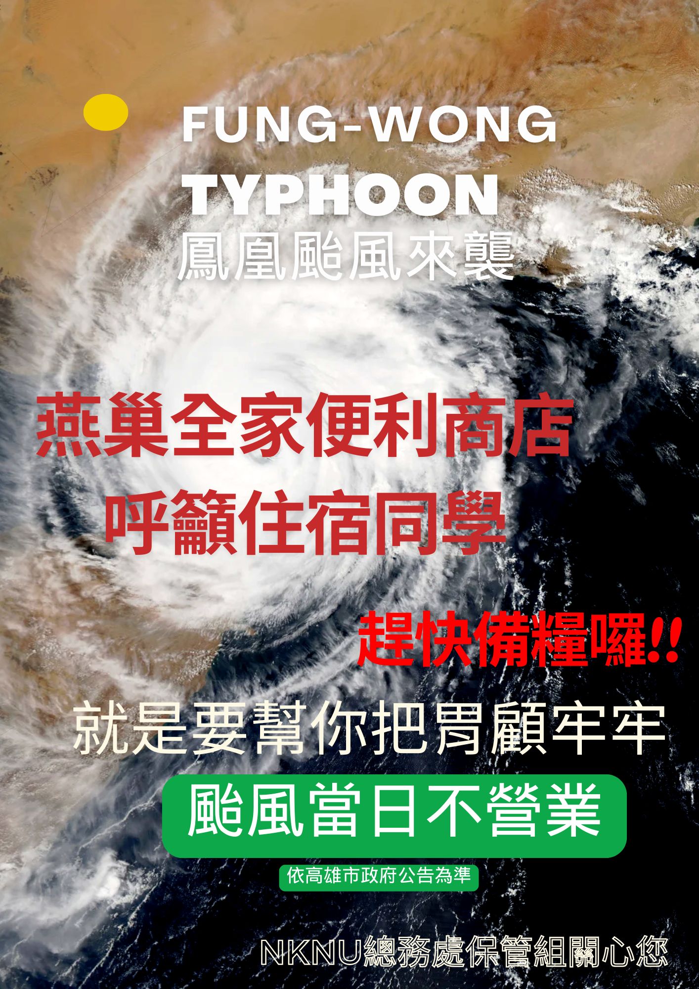 【保管組公告】燕巢全家便利商店 🌪️ 呼籲同學備糧囉 🌪️