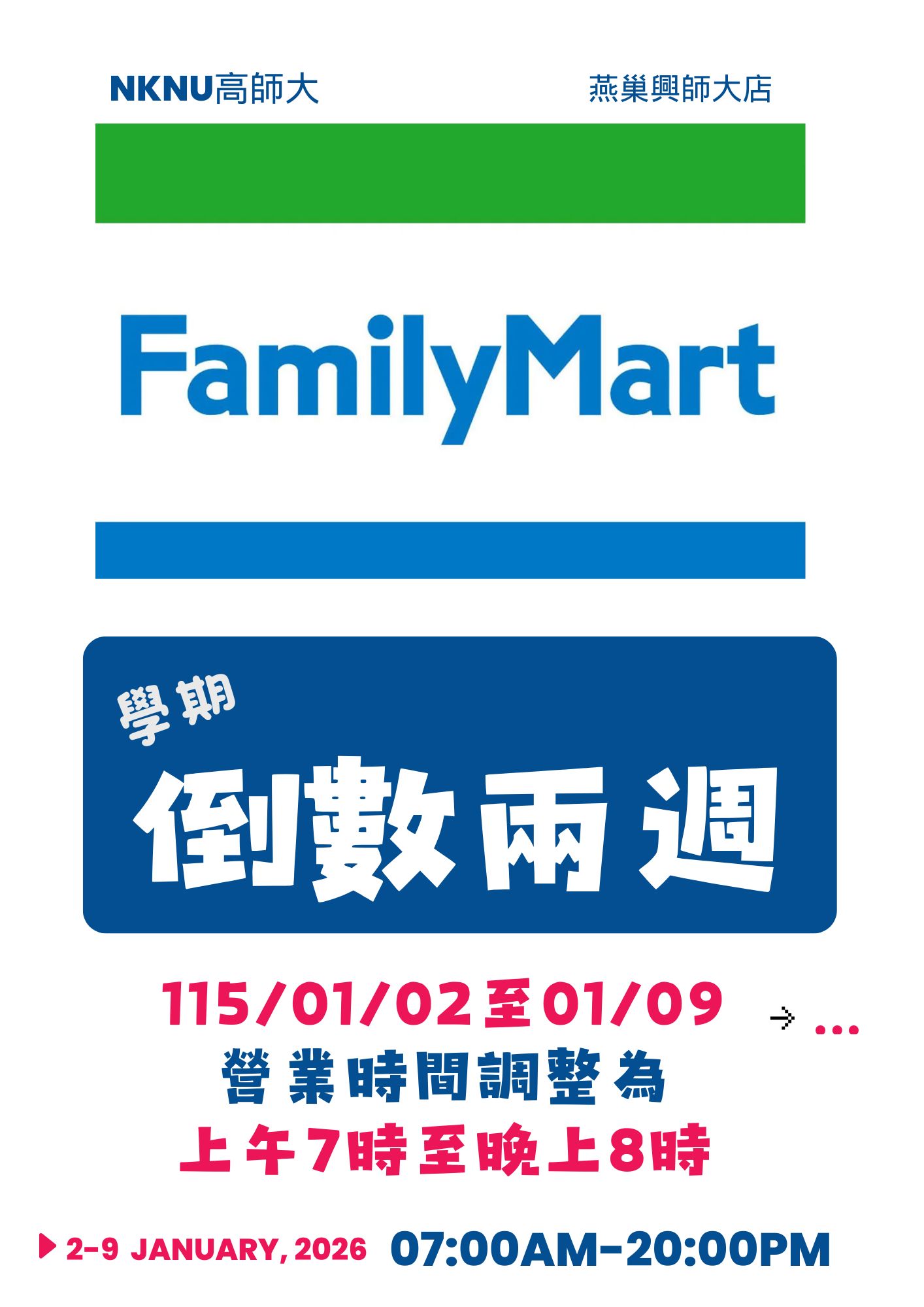 全家便利商店 |📢 營業時間調整提醒|期末倒數限定版