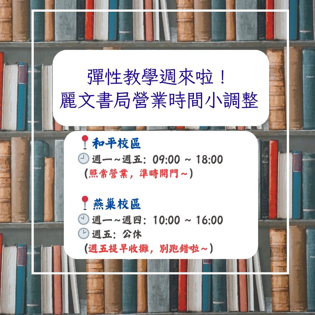 115/1/2(五) ~ 1/9(五) 不只課表變彈性,麗文書局也小變身囉~