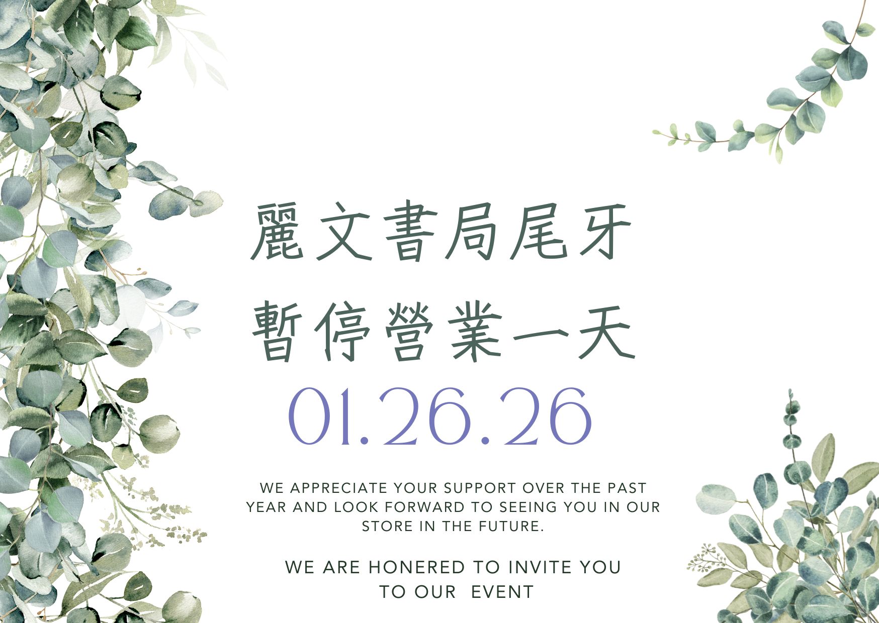 📚🌿麗文書局1/26(周一)尾牙 | 暫停營業一天