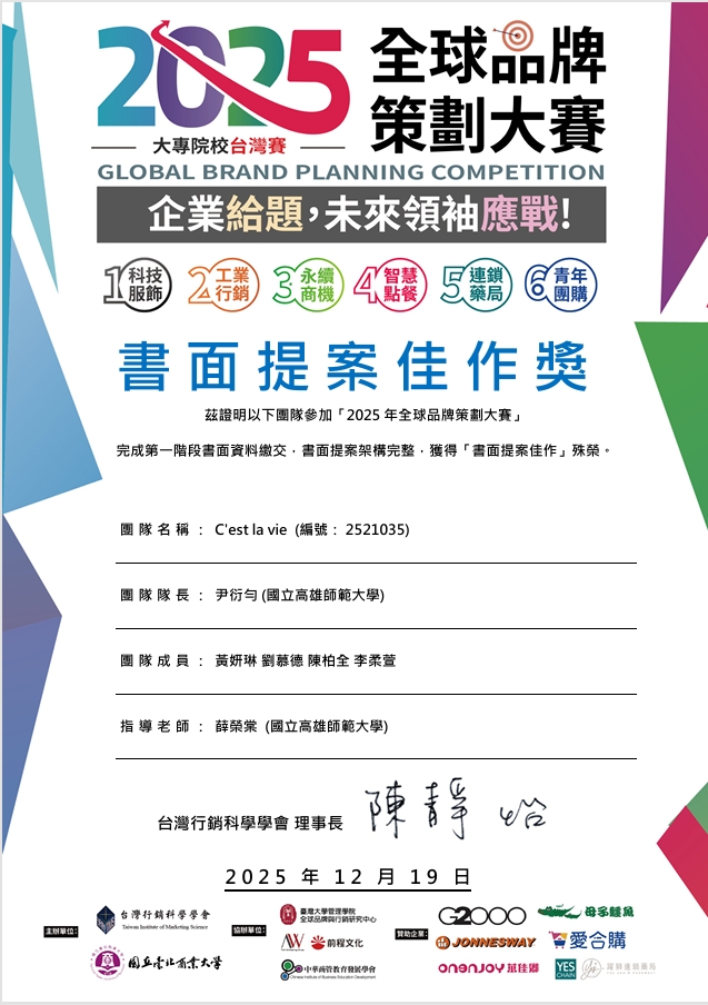參加「2025全球品牌策劃大賽-大專院校台灣賽」
