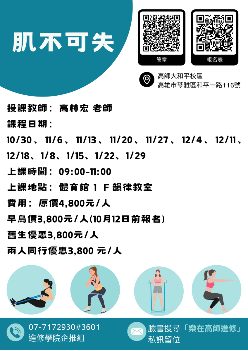進修學院位置:(和平校區)高雄市和平一路116號 教育大樓1樓 教 務 組:(07)717-2930 分機:3643-3647 企劃推廣組:(07)717-2930 分機:3601、3661-3665、3667 傳真: (07)711-0686 綜合服務組:(07)717-2930 分機:3622-3623 學習諮詢組:(07)717-2930 分機:3623 傳真:(07)725-5824