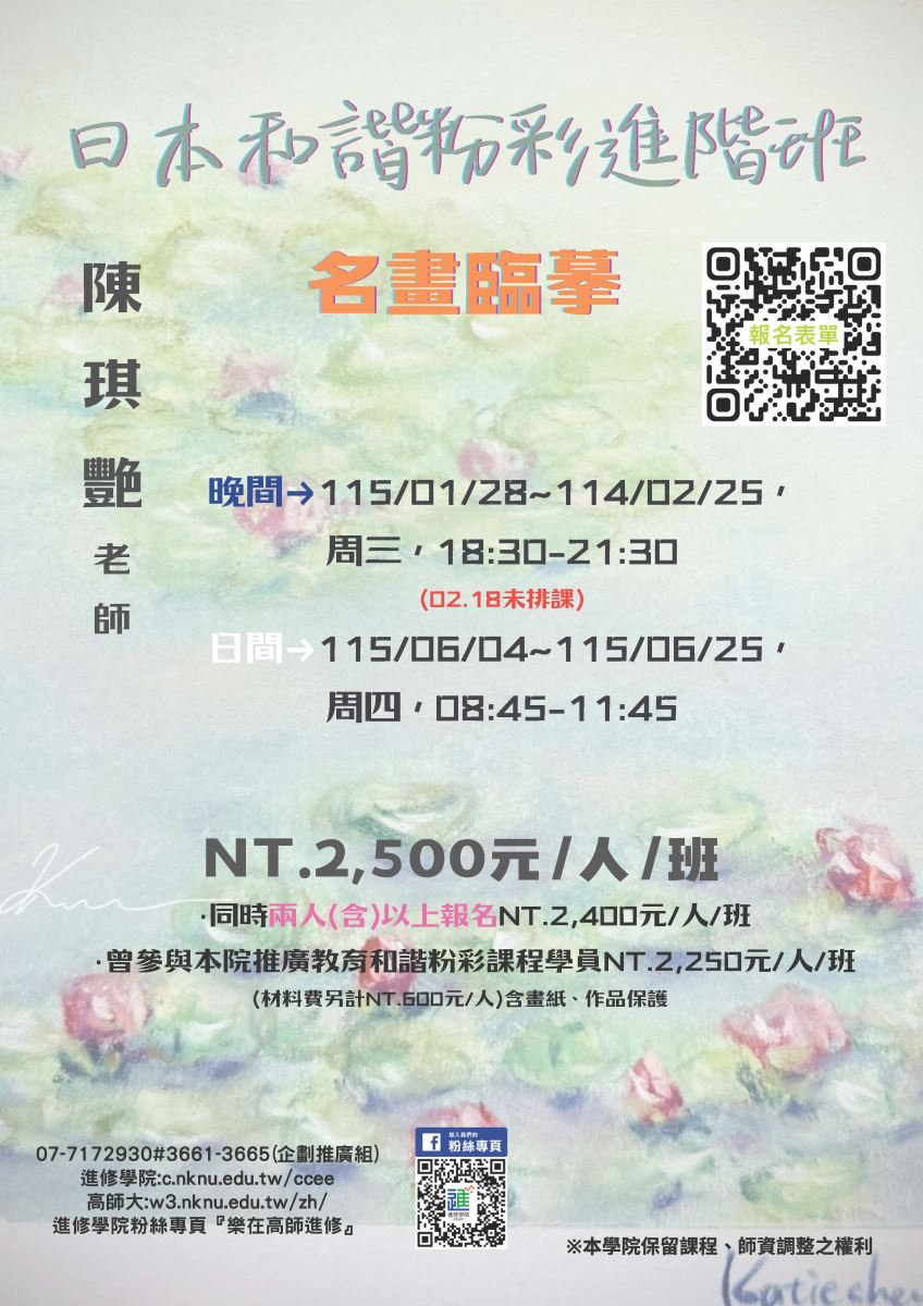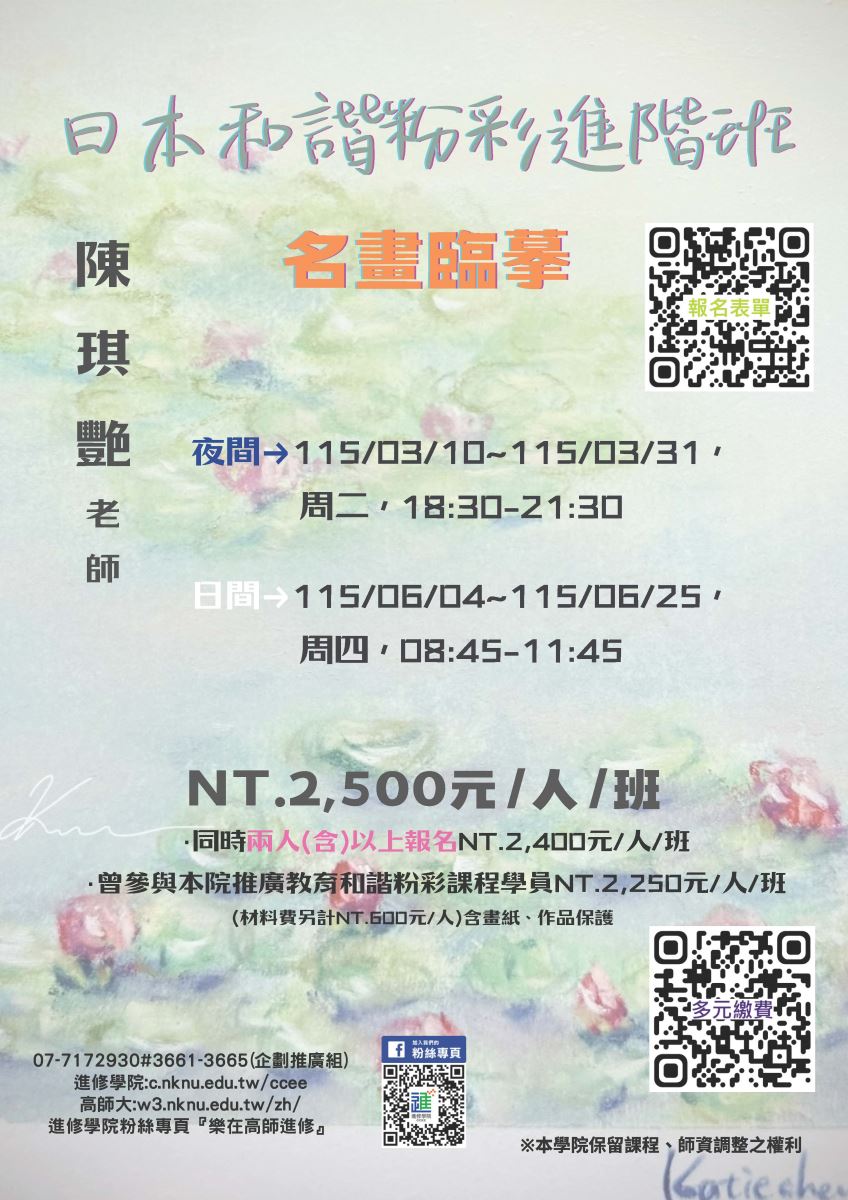 進修學院位置:(和平校區)高雄市和平一路116號 教育大樓1樓 教 務 組:(07)717-2930 分機:3643-3647 企劃推廣組:(07)717-2930 分機:3601、3661-3665、3667 傳真: (07)711-0686 綜合服務組:(07)717-2930 分機:3622-3623 學習諮詢組:(07)717-2930 分機:3623 傳真:(07)725-5824