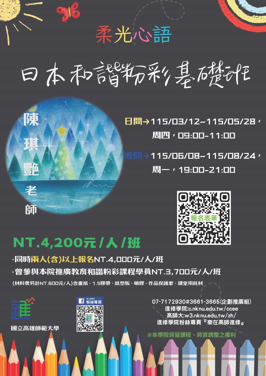 進修學院位置:(和平校區)高雄市和平一路116號 教育大樓1樓 教 務 組:(07)717-2930 分機:3643-3647 企劃推廣組:(07)717-2930 分機:3601、3661-3665、3667 傳真: (07)711-0686 綜合服務組:(07)717-2930 分機:3622-3623 學習諮詢組:(07)717-2930 分機:3623 傳真:(07)725-5824