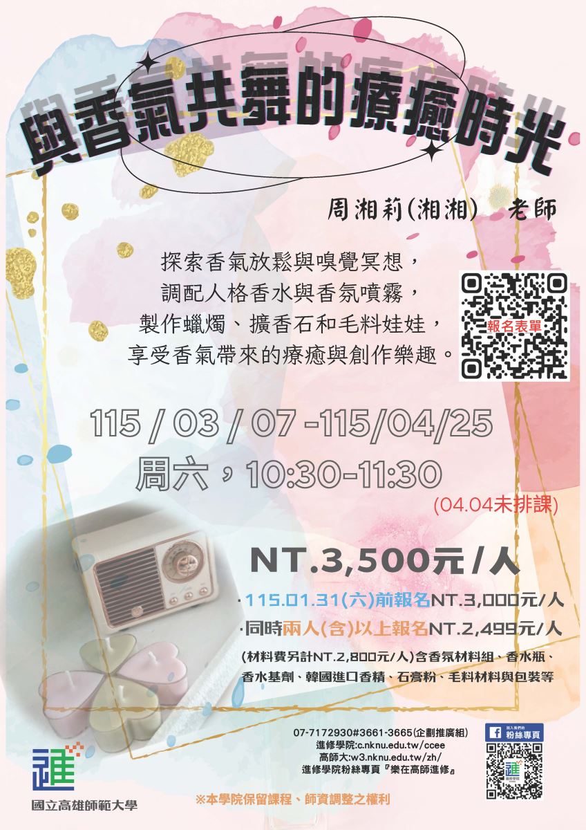 進修學院位置:(和平校區)高雄市和平一路116號 教育大樓1樓 教 務 組:(07)717-2930 分機:3643-3647 企劃推廣組:(07)717-2930 分機:3601、3661-3665、3667 傳真: (07)711-0686 綜合服務組:(07)717-2930 分機:3622-3623 學習諮詢組:(07)717-2930 分機:3623 傳真:(07)725-5824