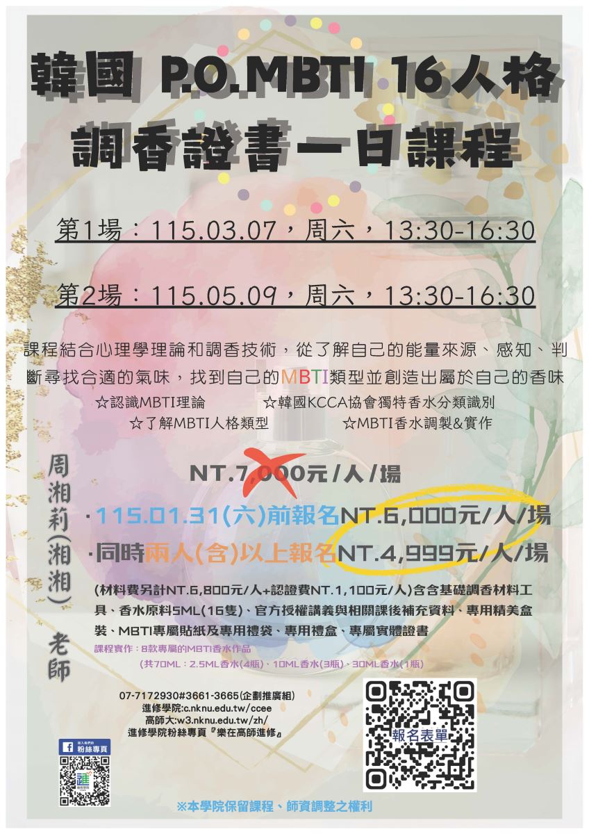 韓國 P.O.MBTI 官方系統 人格分析 × 調香實作 完成即獲專屬實體證書