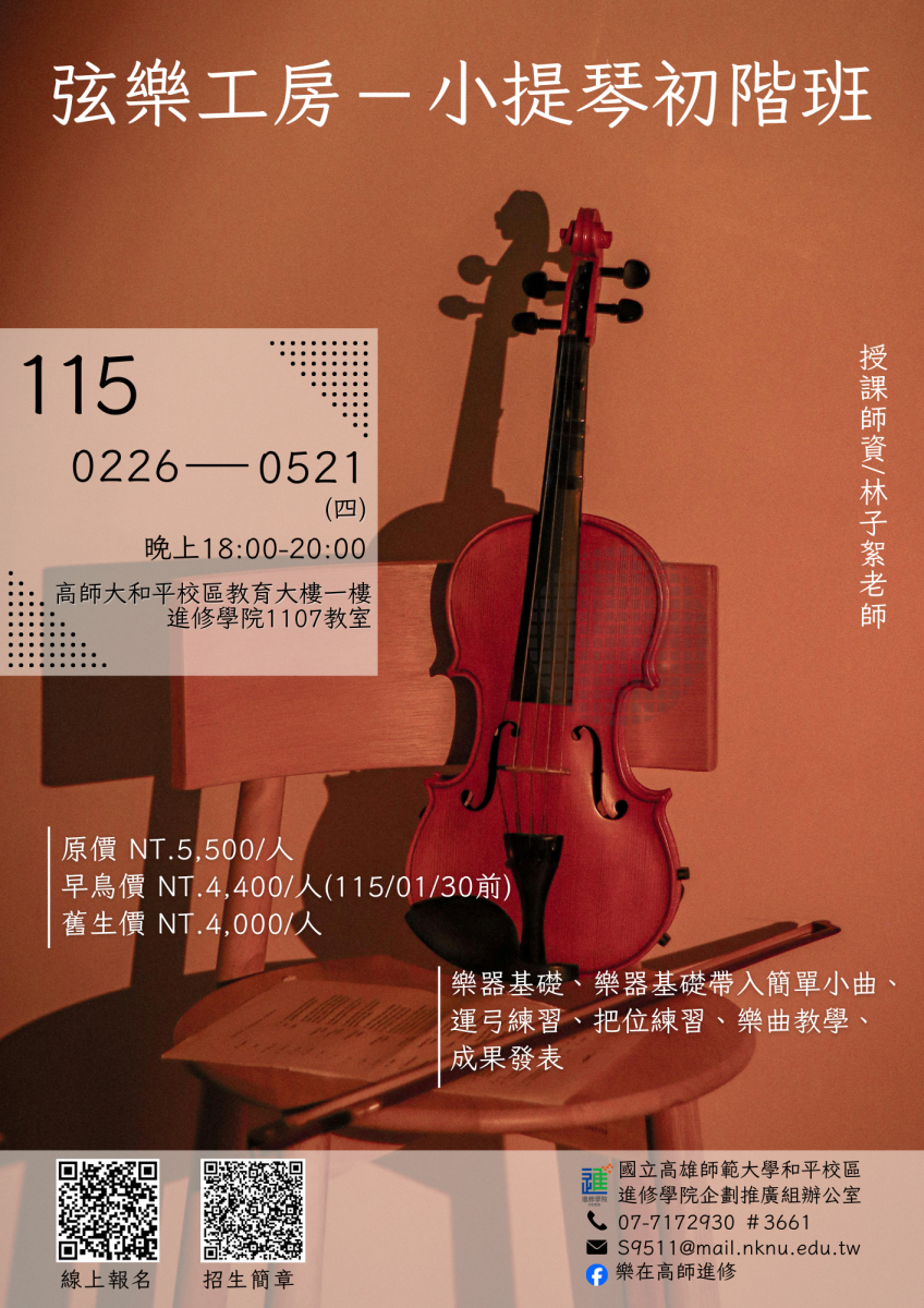 🎵114-2【弦樂工房-小提琴初階班】招生中,歡迎報名🎵