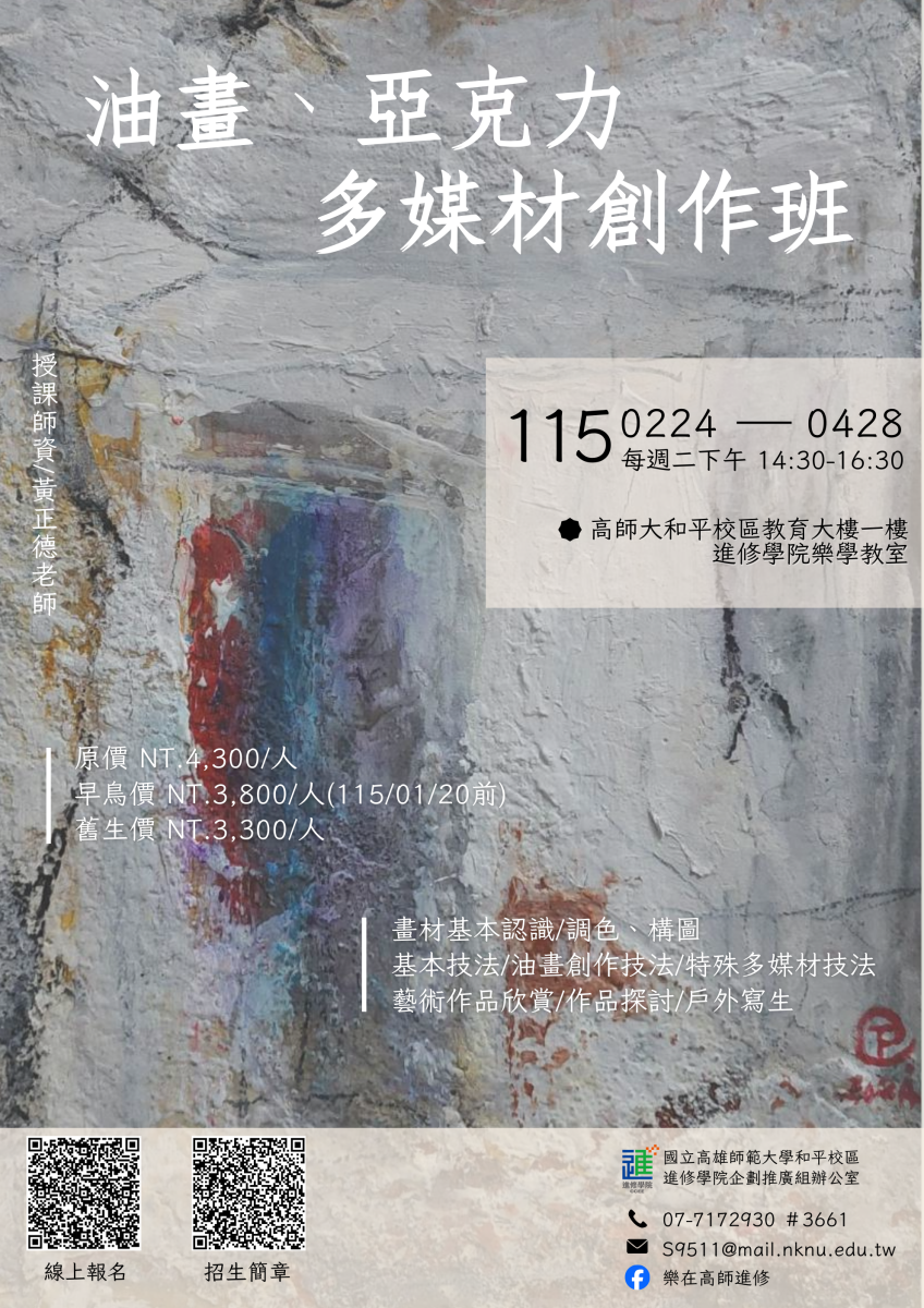 🖌️114-2【油畫、亞克力、多媒材創作班】招生中,歡迎報名🖌️