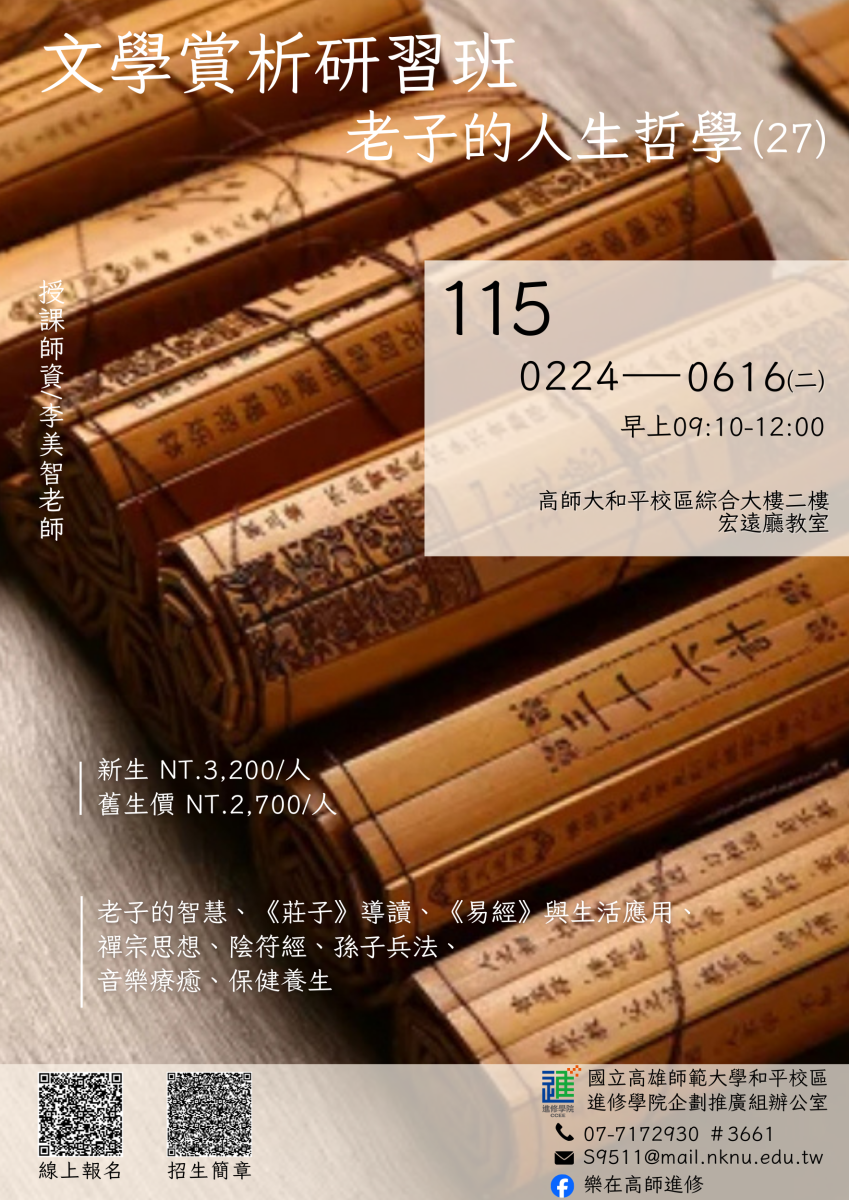 😍114-2【文學賞析研習班-老子的人生哲學(27)】招生中,歡迎報名😍