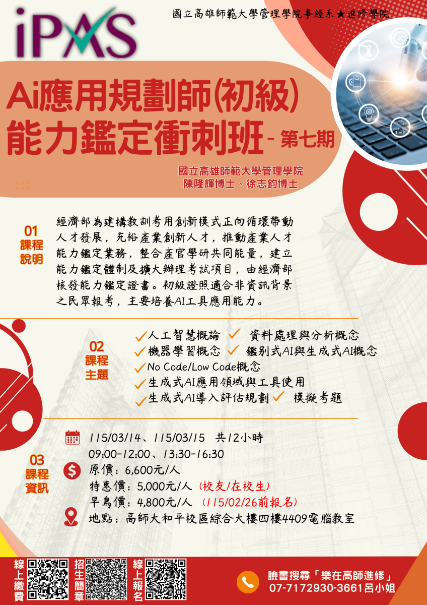 😍超熱門課程😍「AI應用規劃師(初級)能力鑑定衝刺班(第7期)」熱烈招生中,歡迎報名!