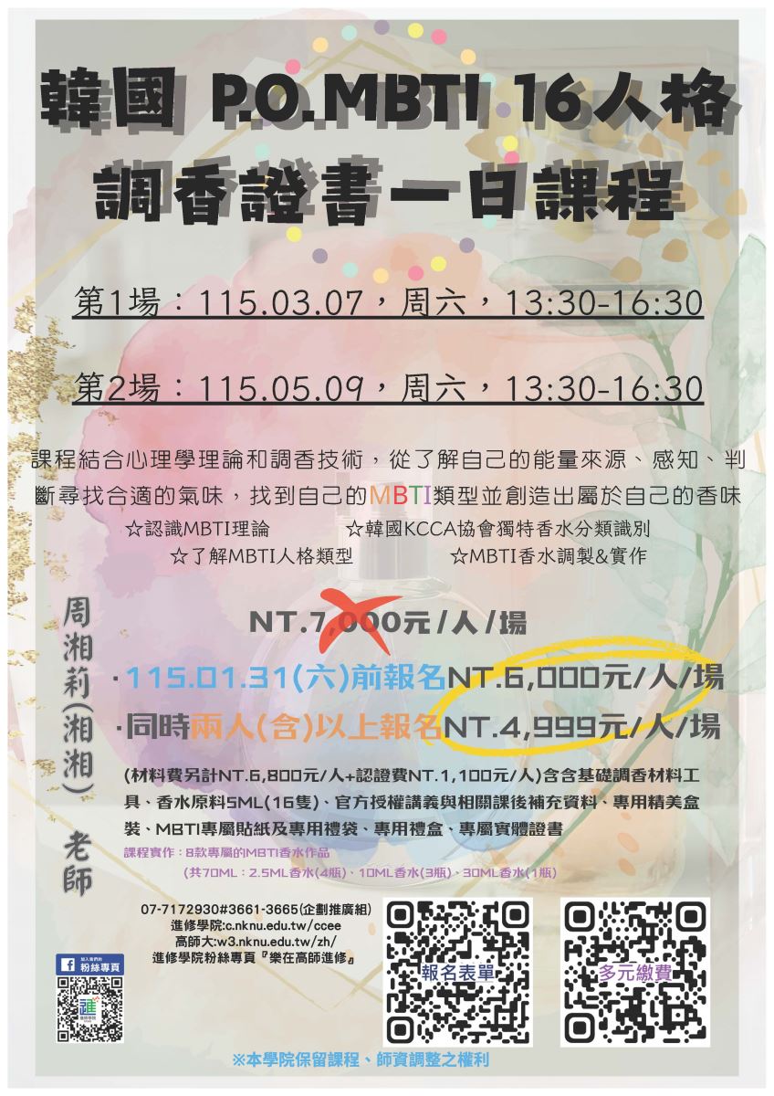 【韓國P.O.MBTI 16人格調香證書一日課程】