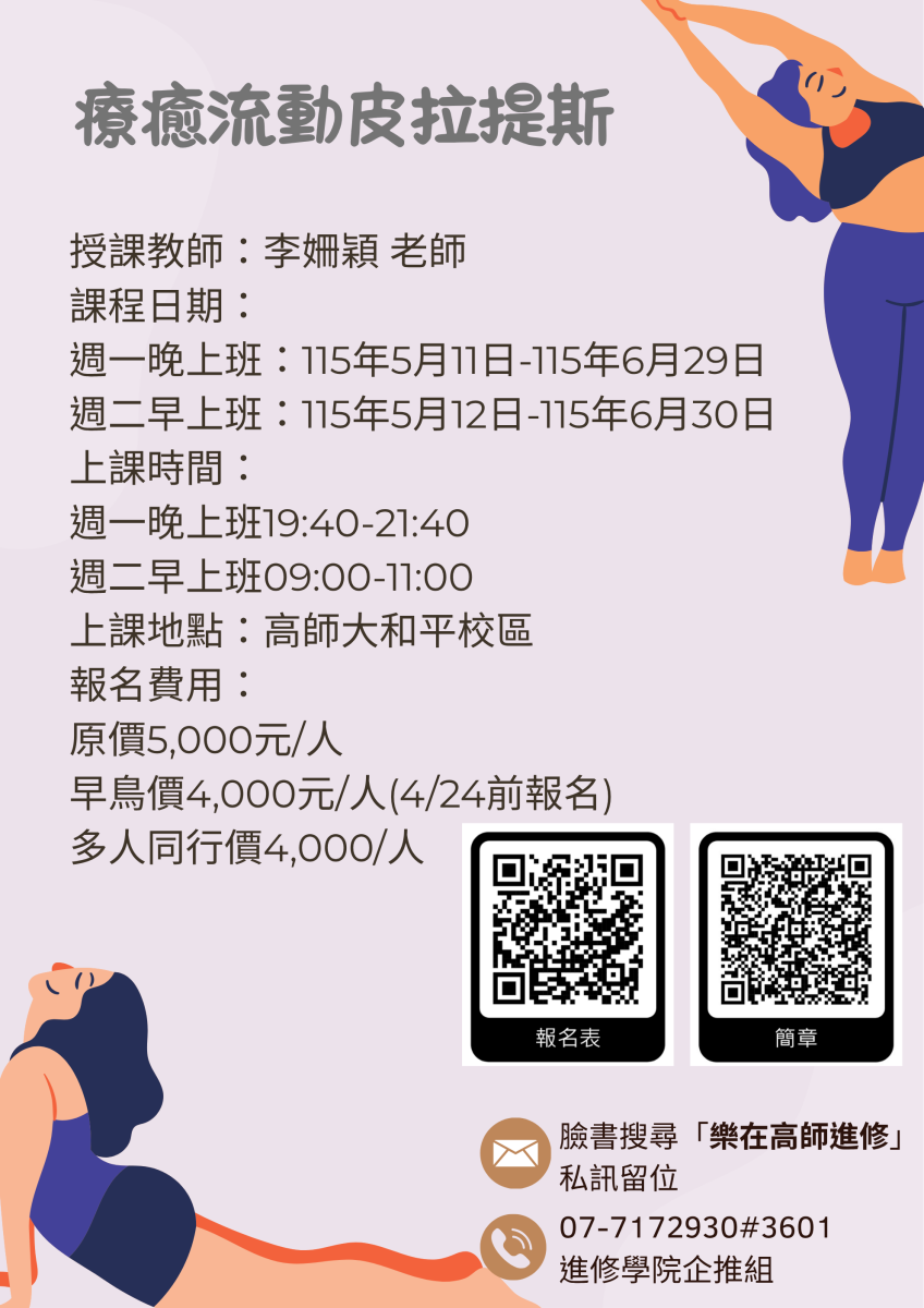 進修學院位置:(和平校區)高雄市和平一路116號 教育大樓1樓 教 務 組:(07)717-2930 分機:3643-3647 企劃推廣組:(07)717-2930 分機:3601、3661-3665、3667 傳真: (07)711-0686 綜合服務組:(07)717-2930 分機:3622-3623 學習諮詢組:(07)717-2930 分機:3623 傳真:(07)725-5824