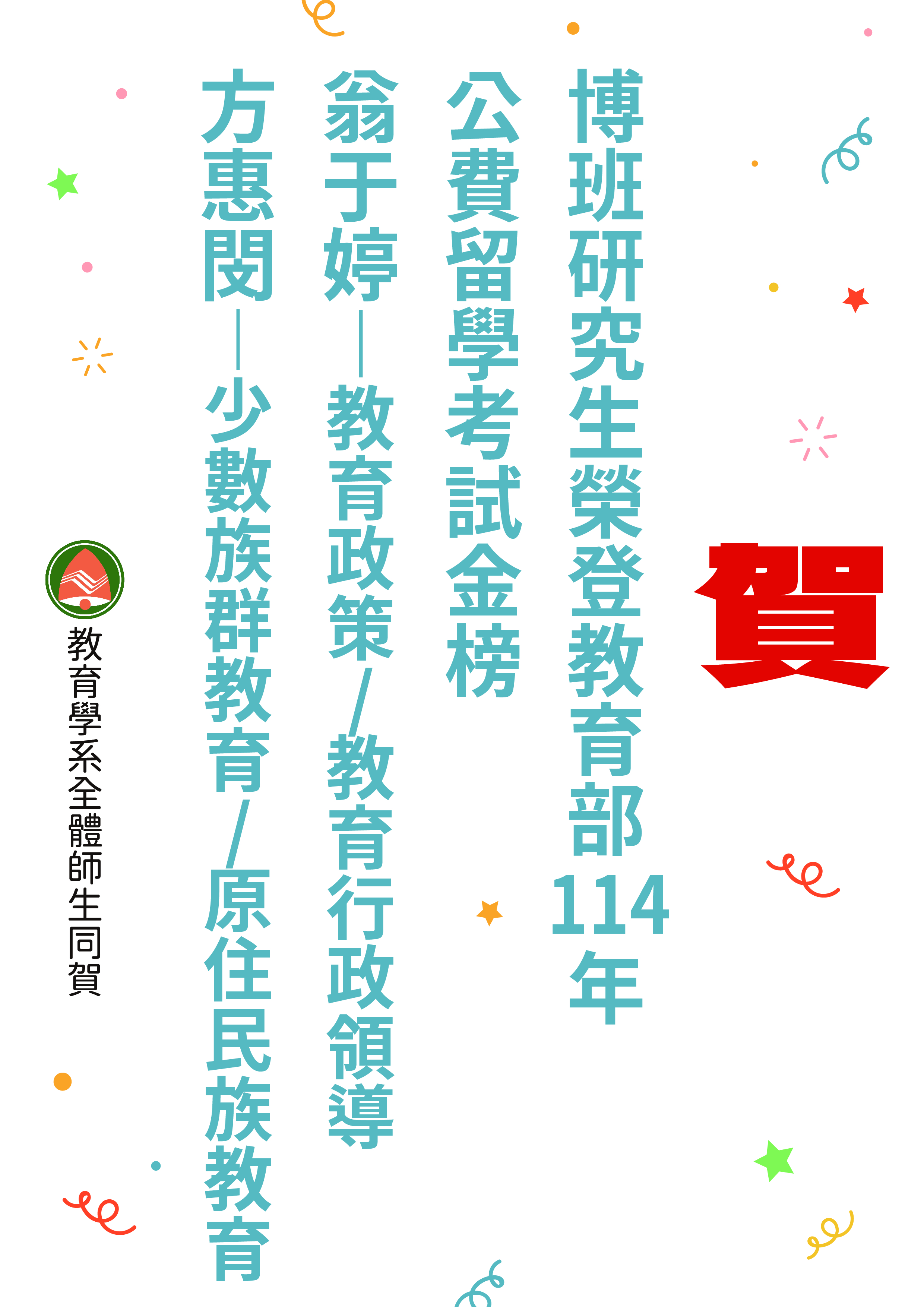 賀本系博班研究生翁于婷、方惠閔榮登教育部114年公費留學考試金榜
