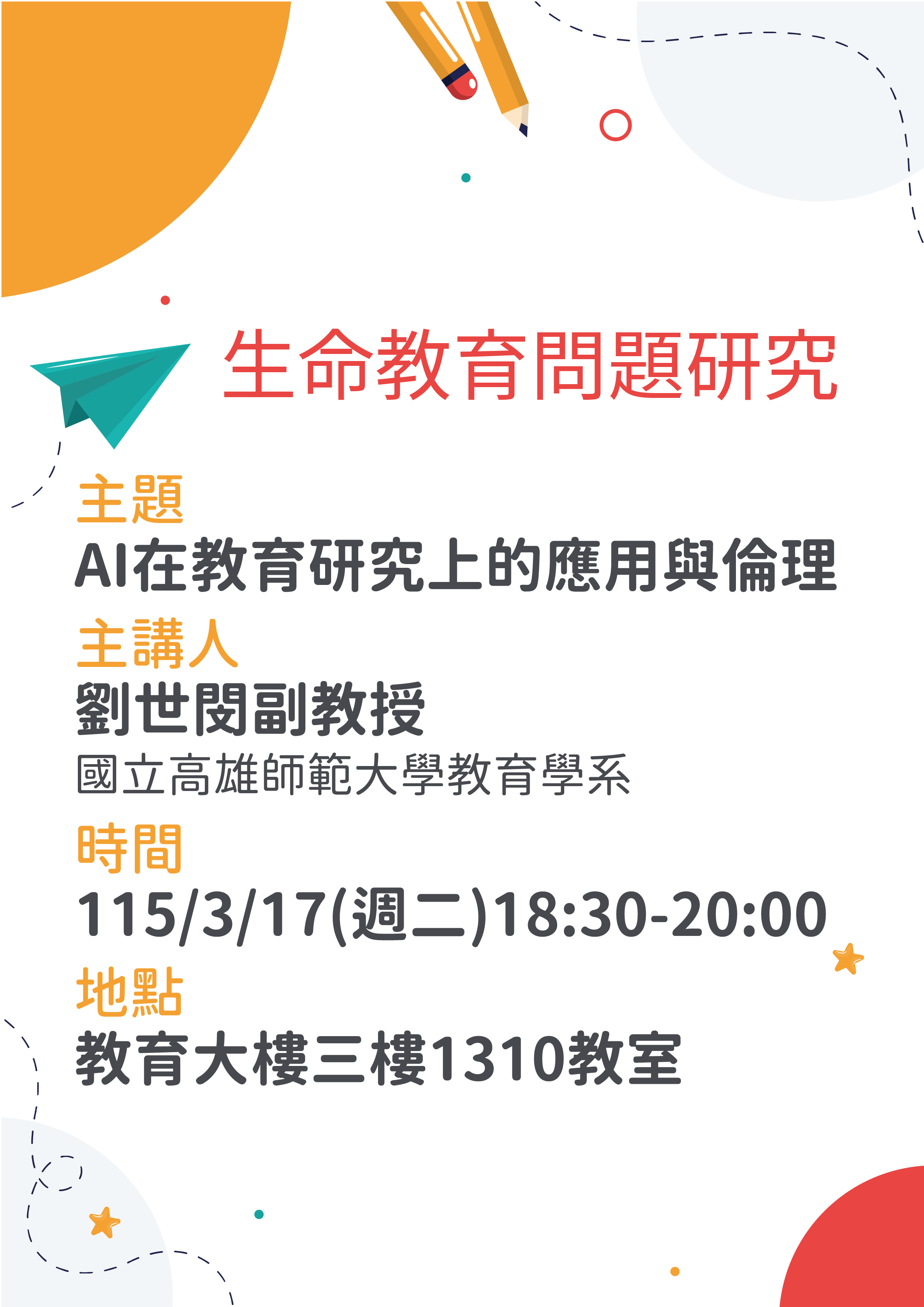 3月17日(二)夜間專題演講:AI在教育研究上的應用與倫理