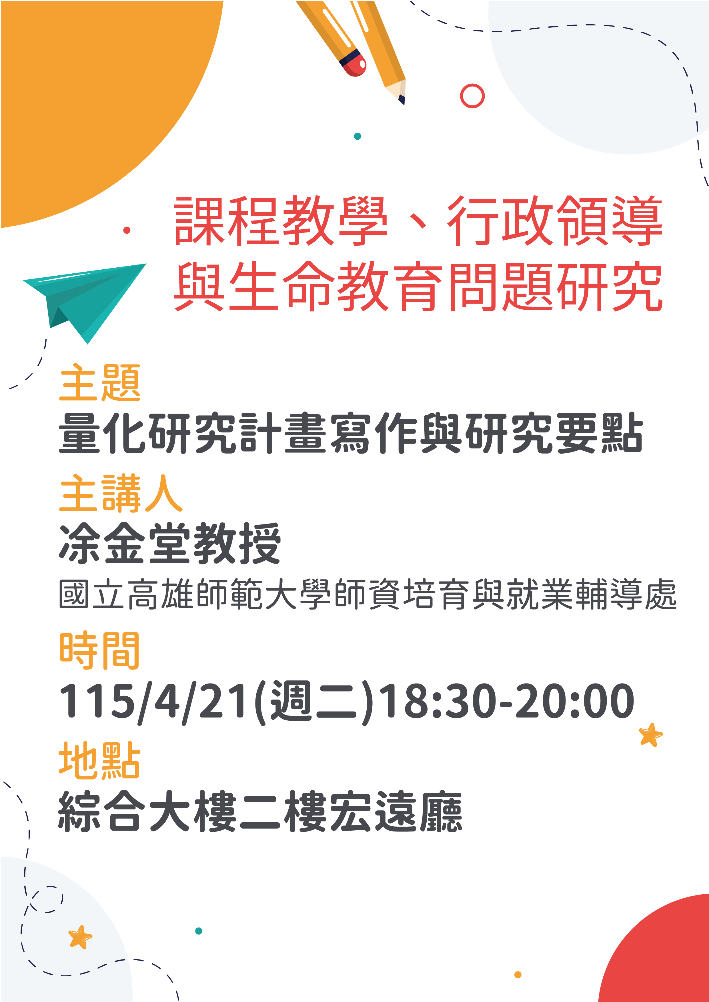 4月21日(二)夜間專題演講:量化研究計畫寫作與研究要點