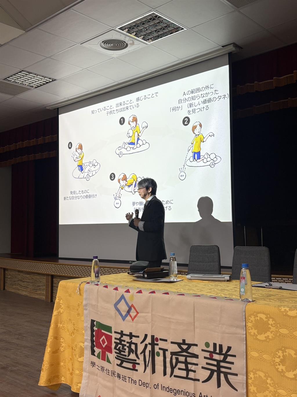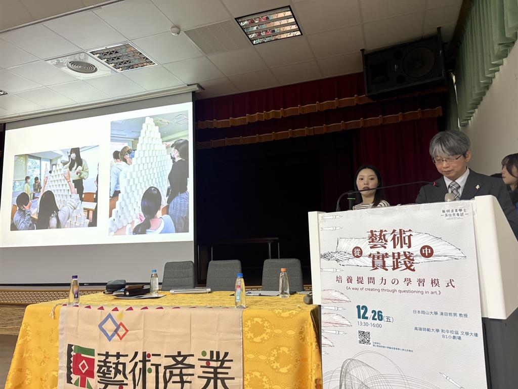 隨著經濟和文化進入全球化的時代,如何讓學生的培養學習能力具備全球競爭力,已成為值得深思的問題。 高雄師範大學藝術學院藝術產業學士原住民專班於114年12月26日邀請日本岡山大學清田哲男教授來訪,進行學術交流並於和平校區文學大樓 B1小劇場舉辦「從藝術實踐中培養提問力的學習模式」講座。