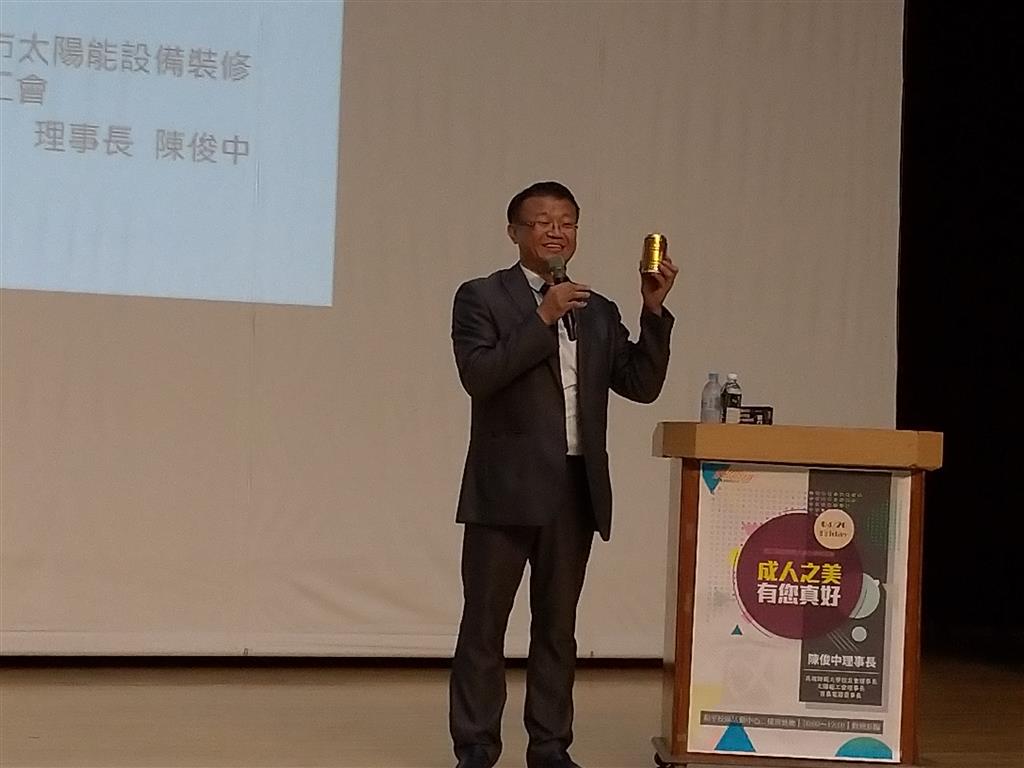 講者:陳俊中理事長/高雄師範大學校友會理事長/太陽能工會理事長/百嘉電器董事長