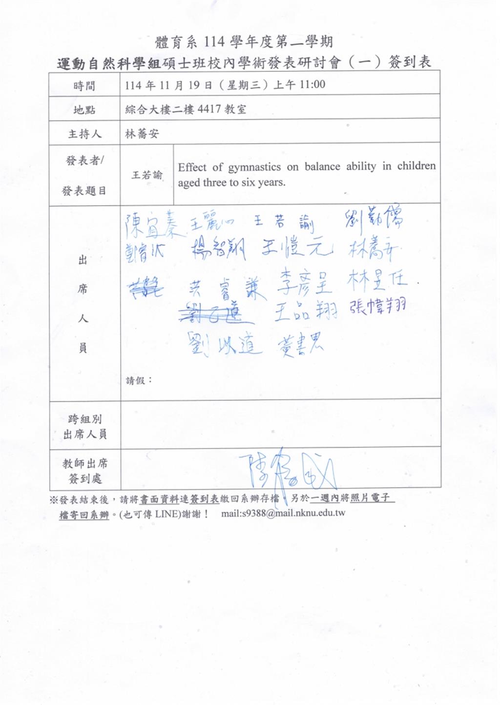 王若諭 Effect of gymnastics on balance ability in children aged three to six years.