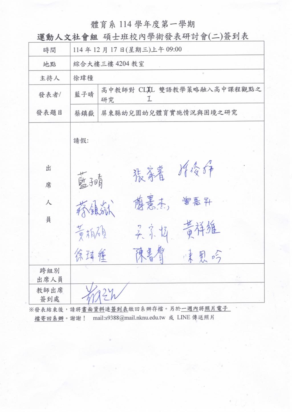 114 學年度第一學期校內發表(二) (114.12.17)社會組