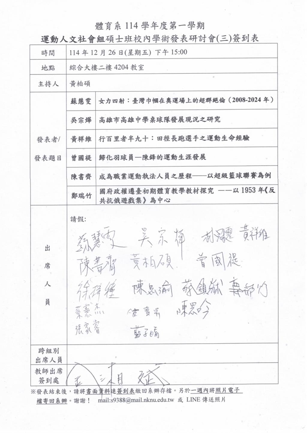 114 學年度第一學期校內發表(三) (114.12.26)社會組