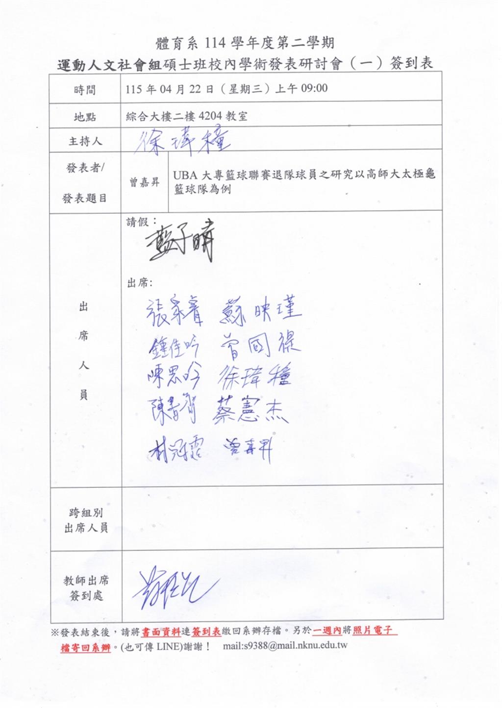 114 學年度第二學期校內發表(一) (115.04.22)社會組