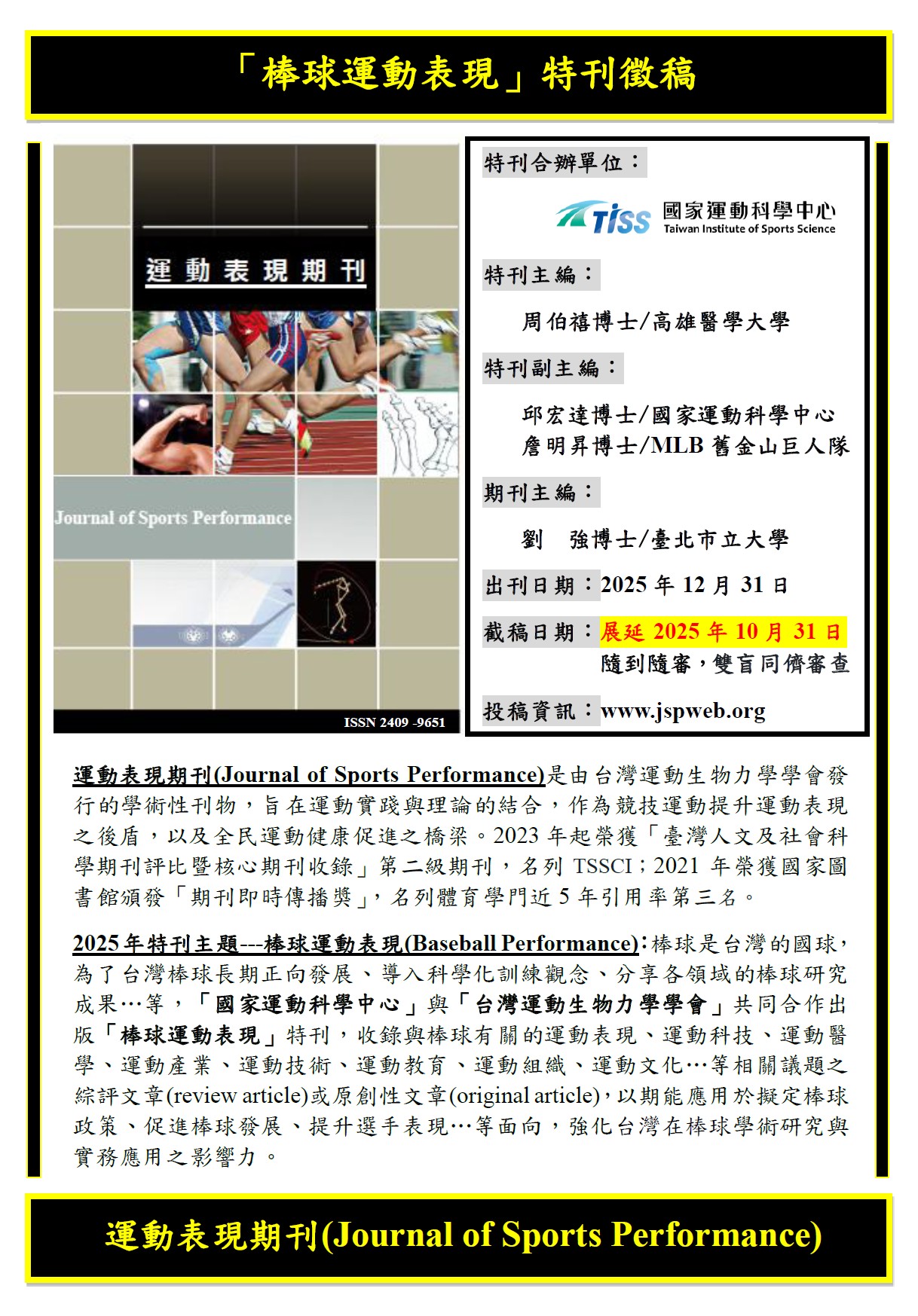 【轉知】2025年特刊徵稿宣傳-棒球運動表現展延徵稿