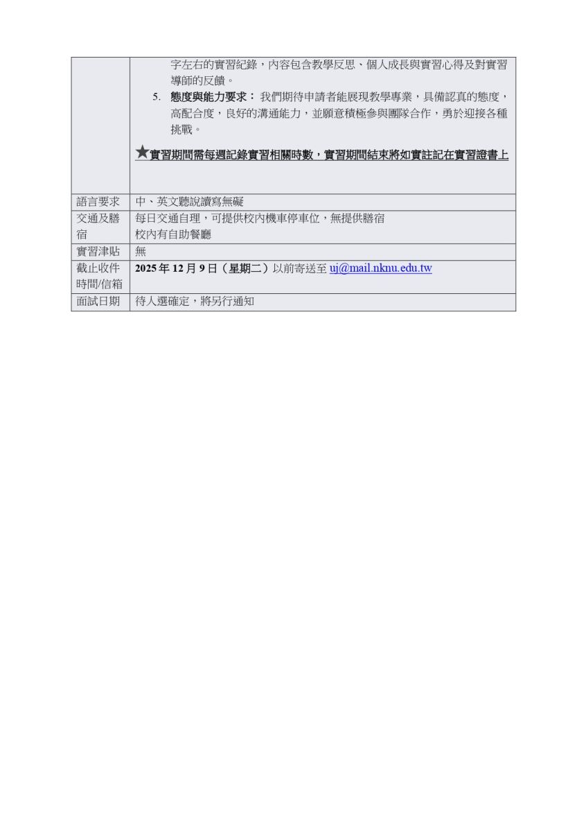 【實習公告】 本所招募115年 高雄美國學校(KAS)實習生缺額共計4名,詳情請見下方說明。