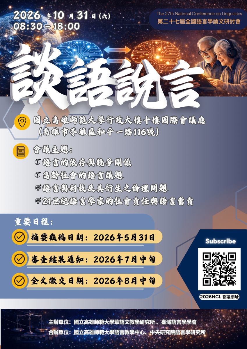 [公告]第二十七屆全國語言學論文研討會熱烈報名中,歡迎有意願者踴躍報名參加!