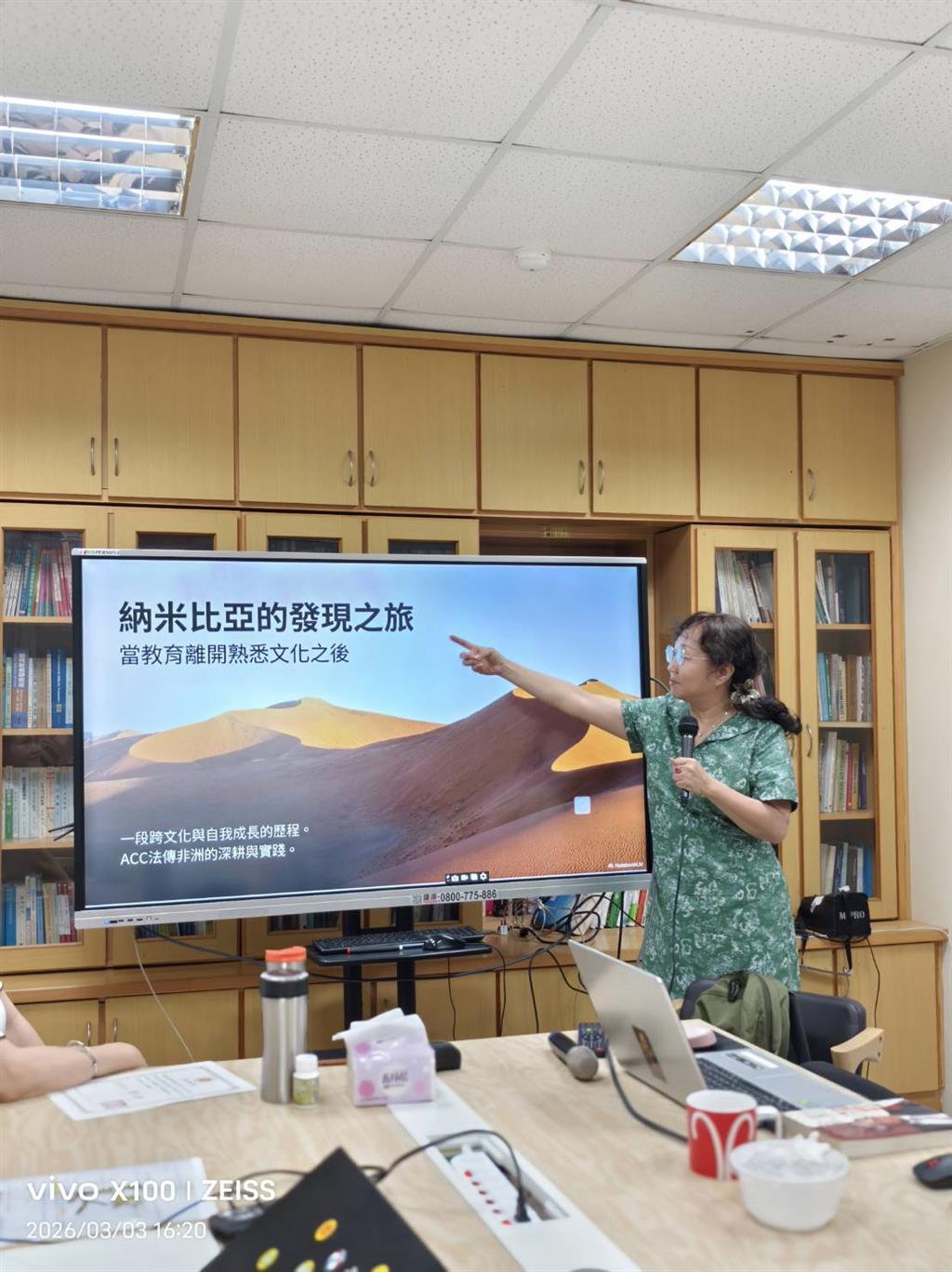 本所於115年3月3日,邀請阿德勒心理學會生命設計教練、德國工商婦女會創業顧問呂艷華,分享「納米比亞發現之旅」,透過這次分享讓學生體會到學習其實不只存在於課堂,而是貫穿人生不同階段的歷程,這正是成人教育所強調的「終身學習」精神。