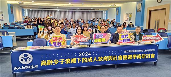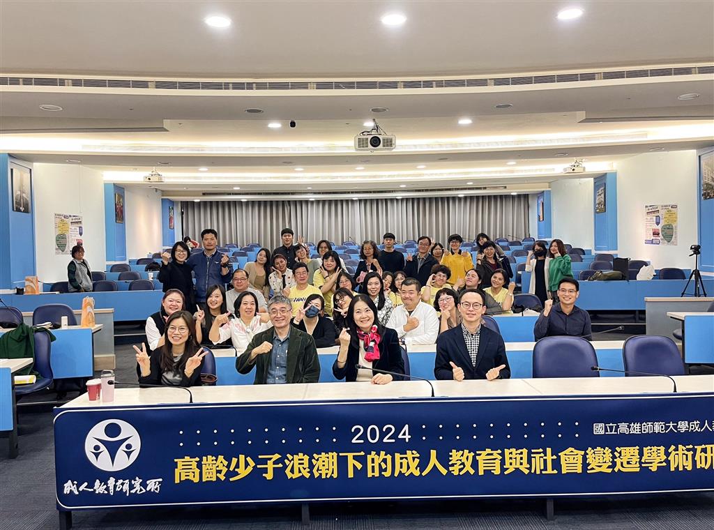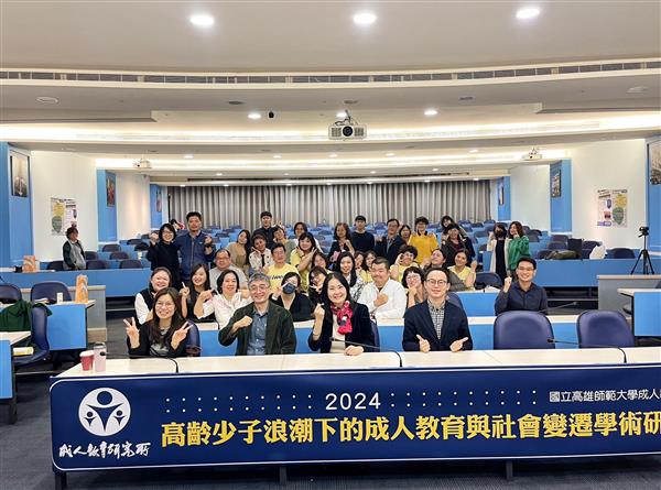 我國成人教育學習標竿系所-國立高雄師範大學成人教育研究所(以下略稱:高師大成教所),113年11月29日於高師大行政大樓十樓國際會議廳,首開混合線上線下混程(Hybrid)國際研討會「2024高齡少子浪潮下的成人教育與社會變遷學術研討會」 (The 2024 Conference on Adult Education and Social Change under the Wave of Aging and Low Fertility),針對國際成人教育、成人教育與世代學習、熟齡健康因素及促進、終身學習等趨勢議題進行研討與交流。